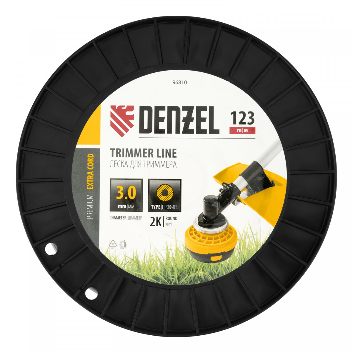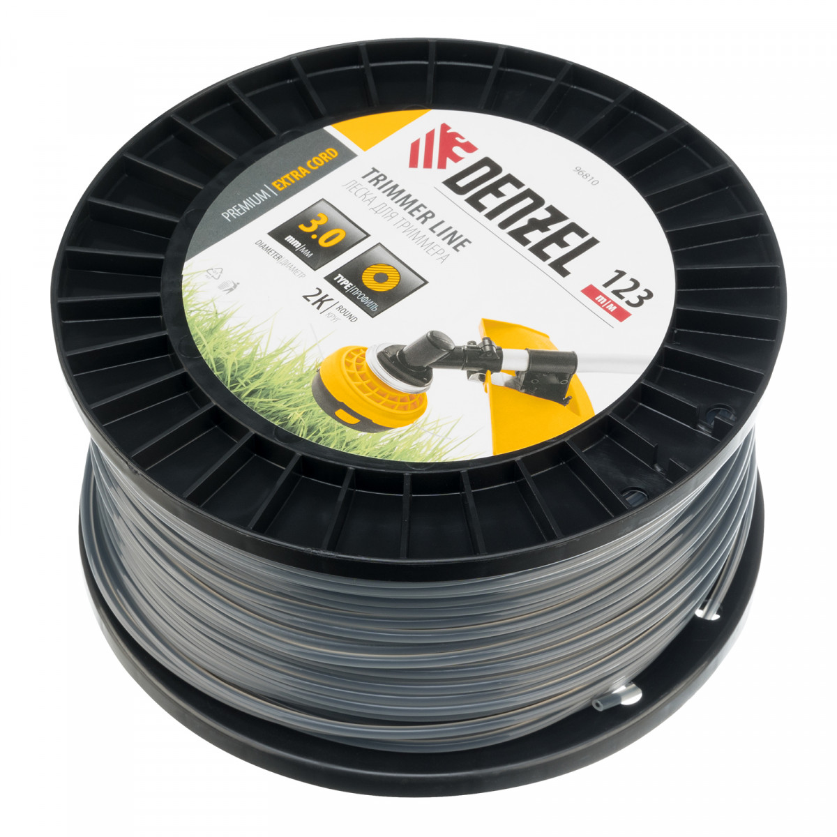 Леска для триммера двухкомпонентная круглая, 3,0мм х 123м, на DIN катушке EXTRA CORD Denzel