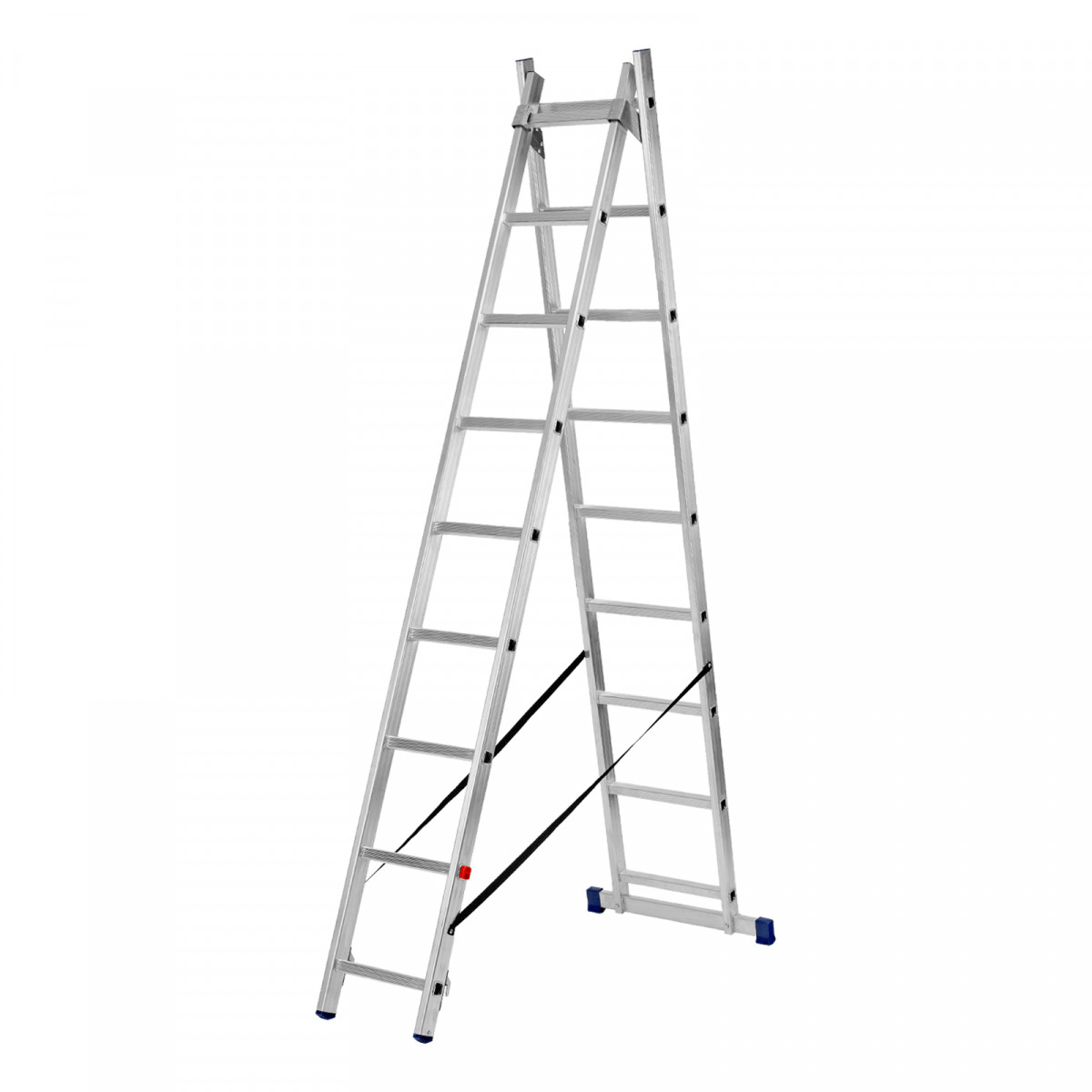 Лестница, 2 х 9 ступеней, алюминиевая, двухсекционная, Сибртех