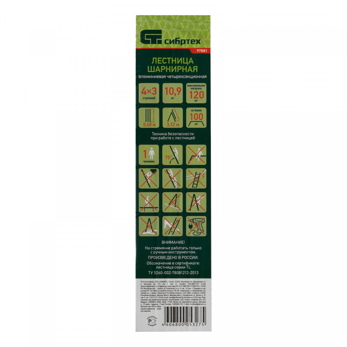 Лестница шарнирная алюминиевая, 4 х 3 ступени, Сибртех