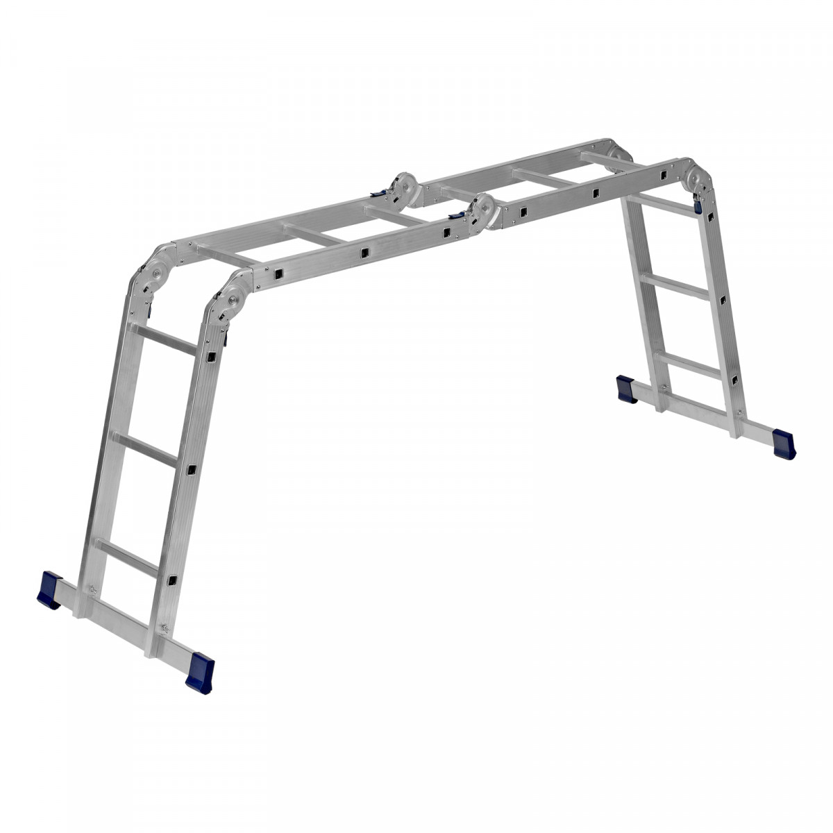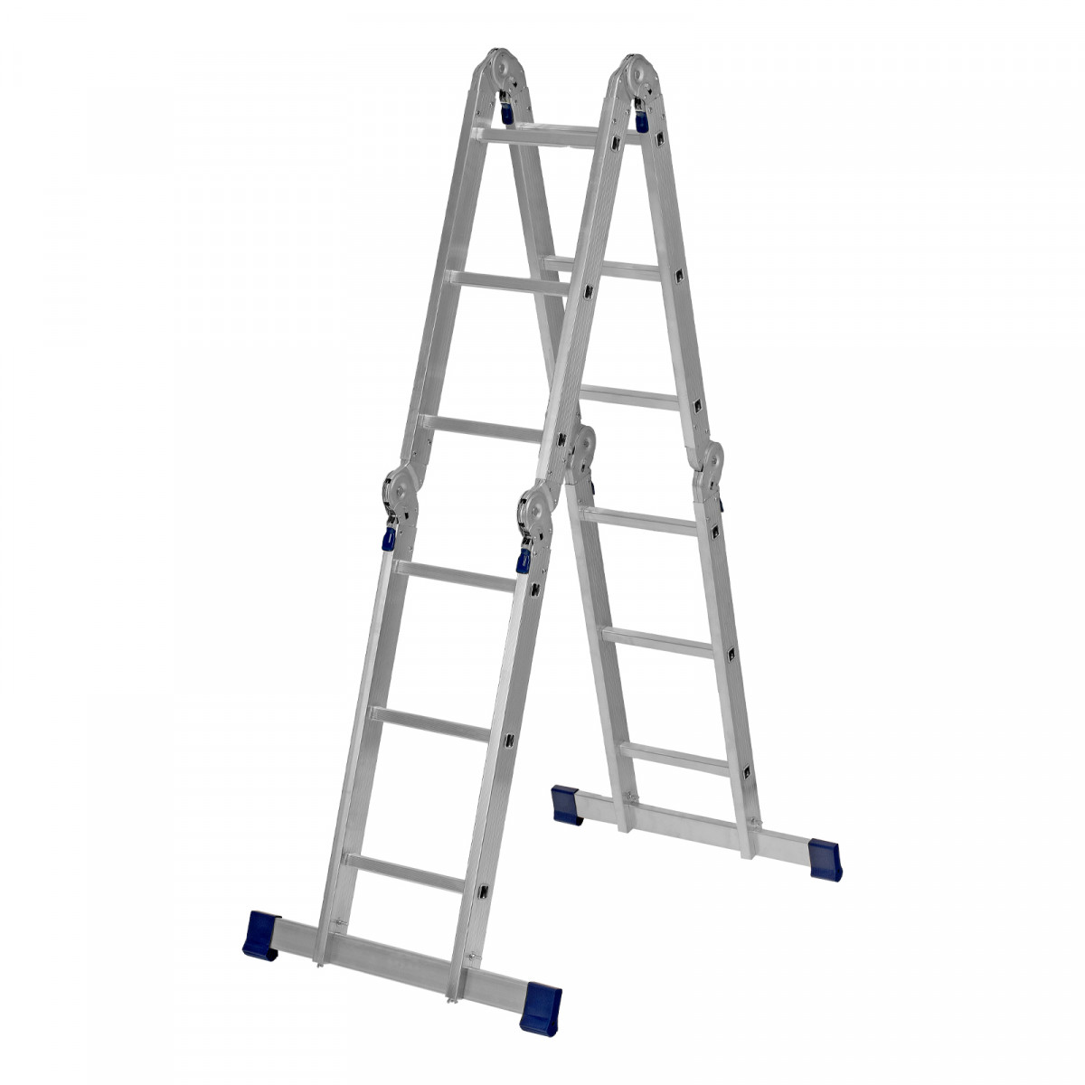 Шарнирная алюминиевая лестница Сибртех 97881 представляет собой 4 секции по 3 ступени, которые можно настроить в нескольких рабочих положениях. Она может использоваться в качестве приставной лестницы, двухсторонней стремянки и помоста. Будет полезна как в быту, так и на небольших стройках, в гараже и магазинах.