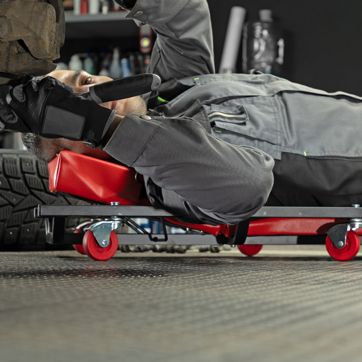 Лежак ремонтный на шести колесах, 1030 х 440 х 120 мм, поднимающийся подголовник Matrix