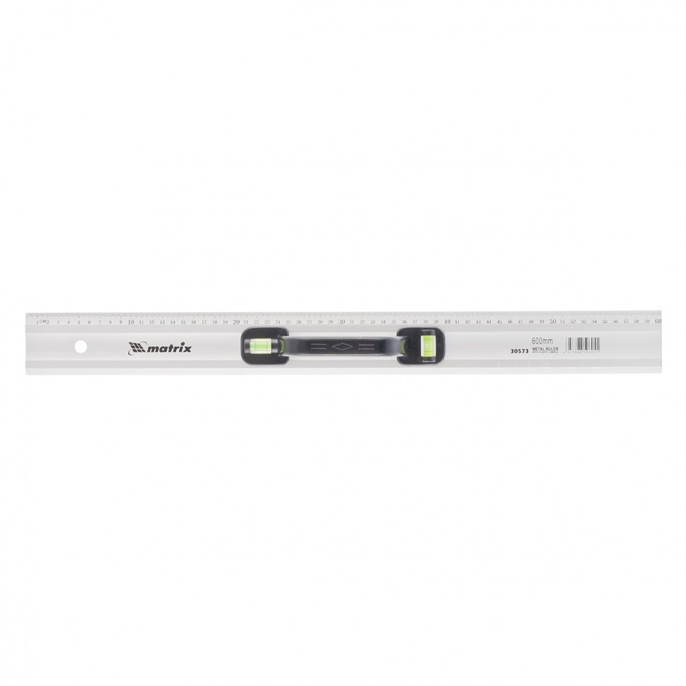 Линейка-уровень, 600 мм, металлическая, пластмассовая ручка 2 глазка Matrix