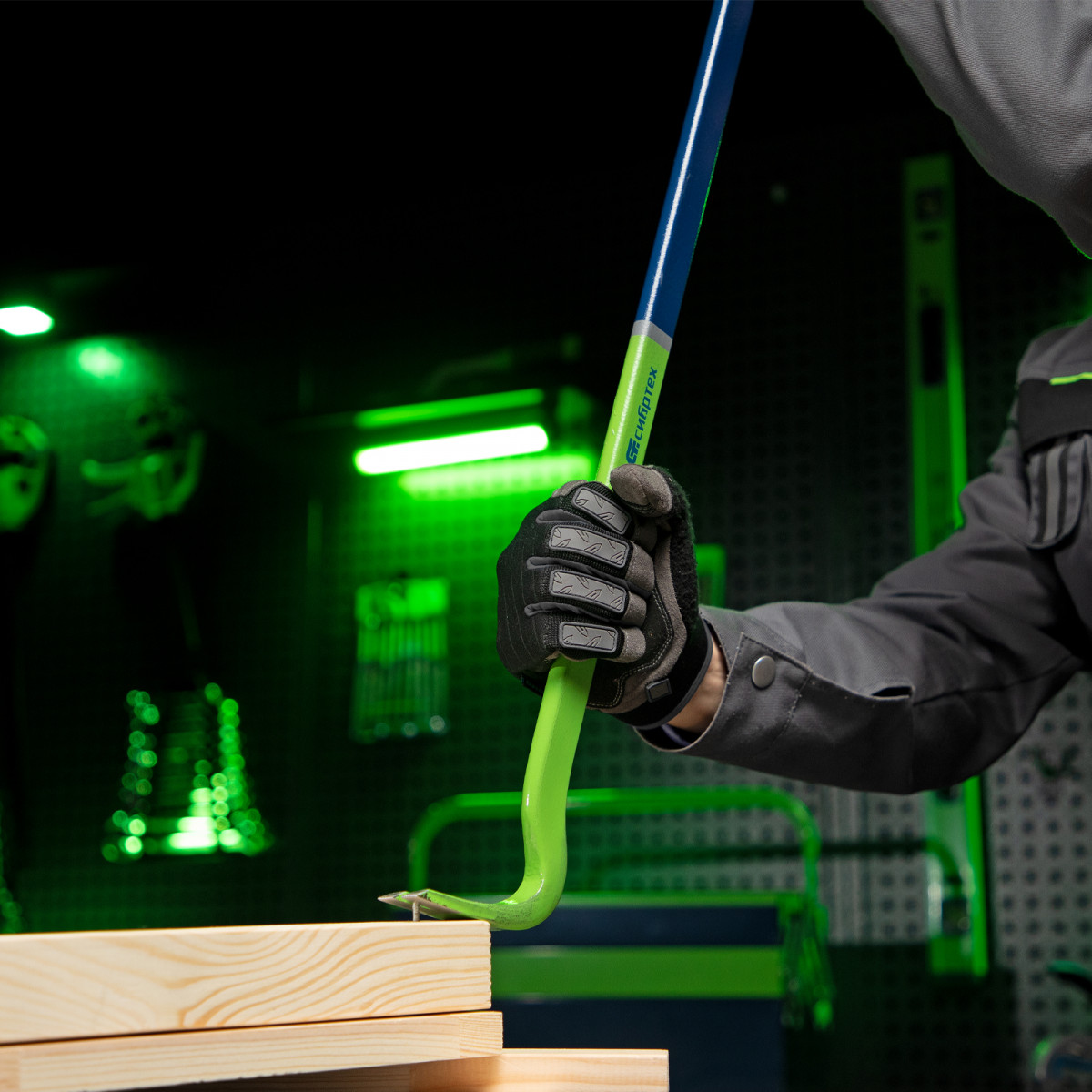 • Прочность — лом-гвоздодер из кованой стали 65 Mn, обладающей пружинными свойствами, не ломается при высоких нагрузках.