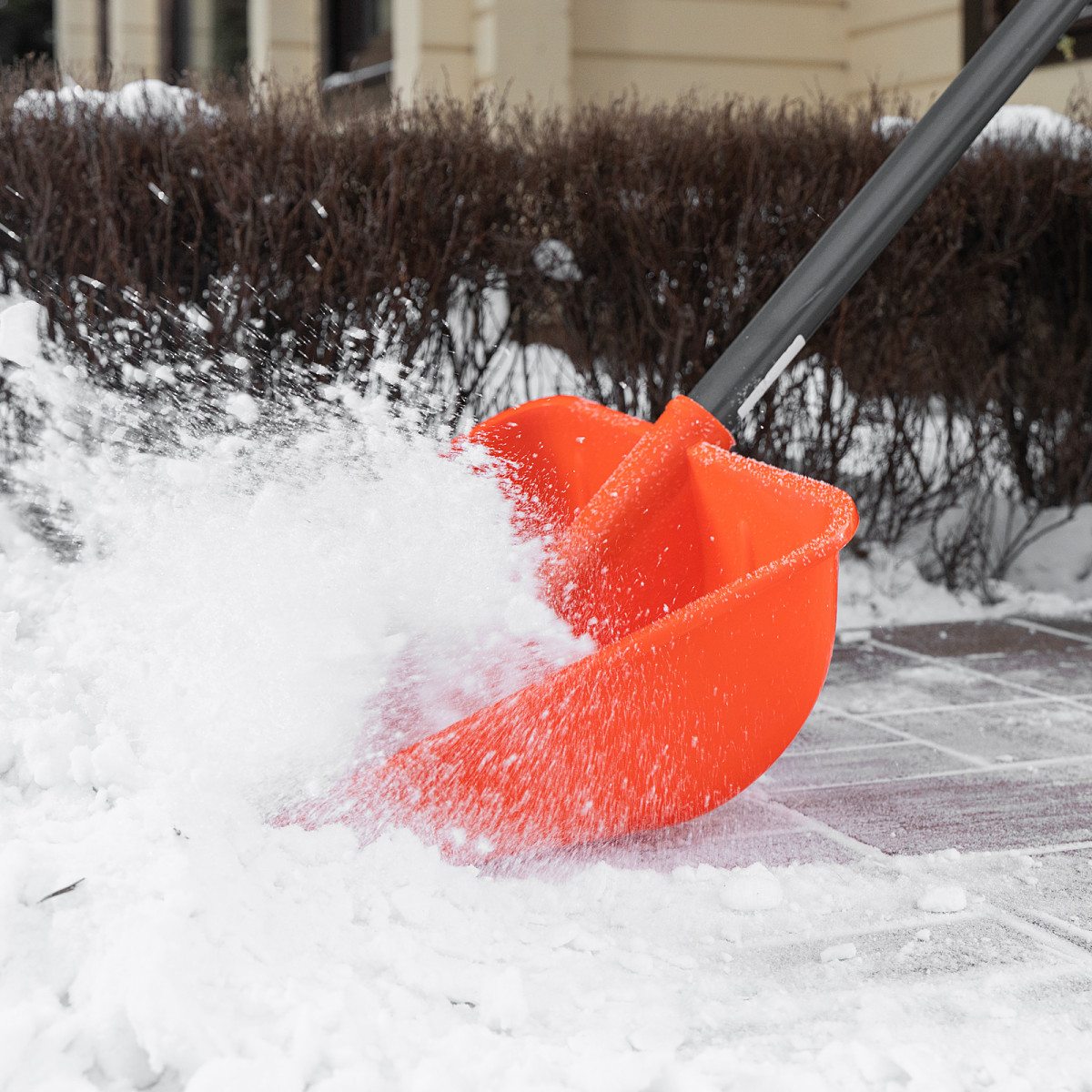 Лопата для уборки снега пластиковая, 400х405х1380 мм, стальной черенок, усиленная Сибртех