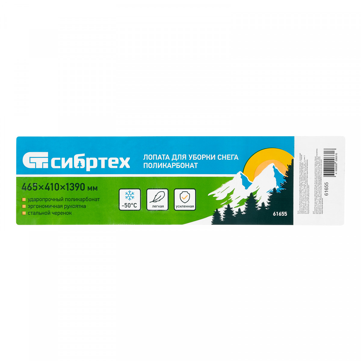 Лопата для уборки снега поликарбонат, 465х410х1390 мм, стальной черенок, усиленная Сибртех