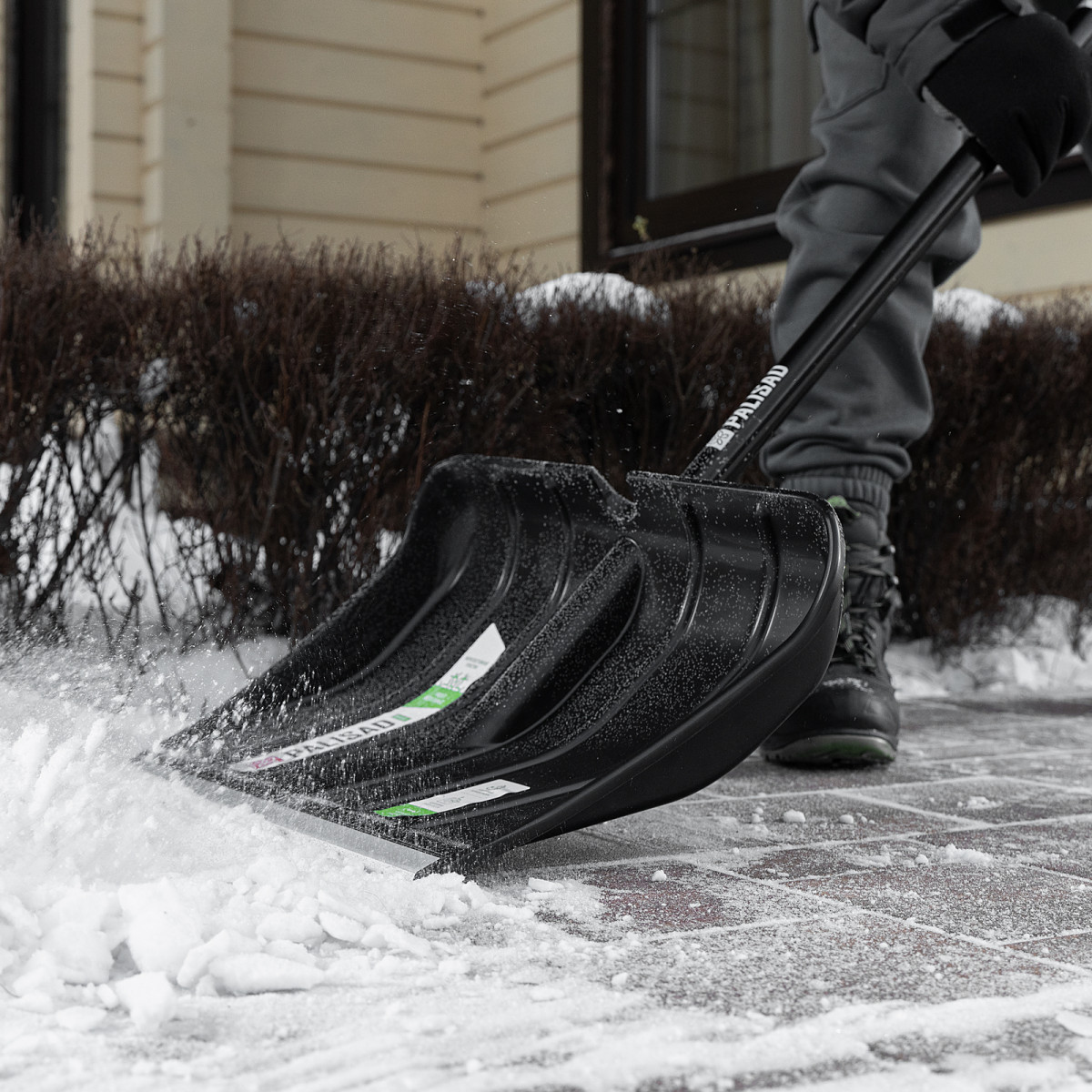 - Эффективная уборка плотного снега — алюминиевая планка защищает рабочую кромку от повреждений и износа.