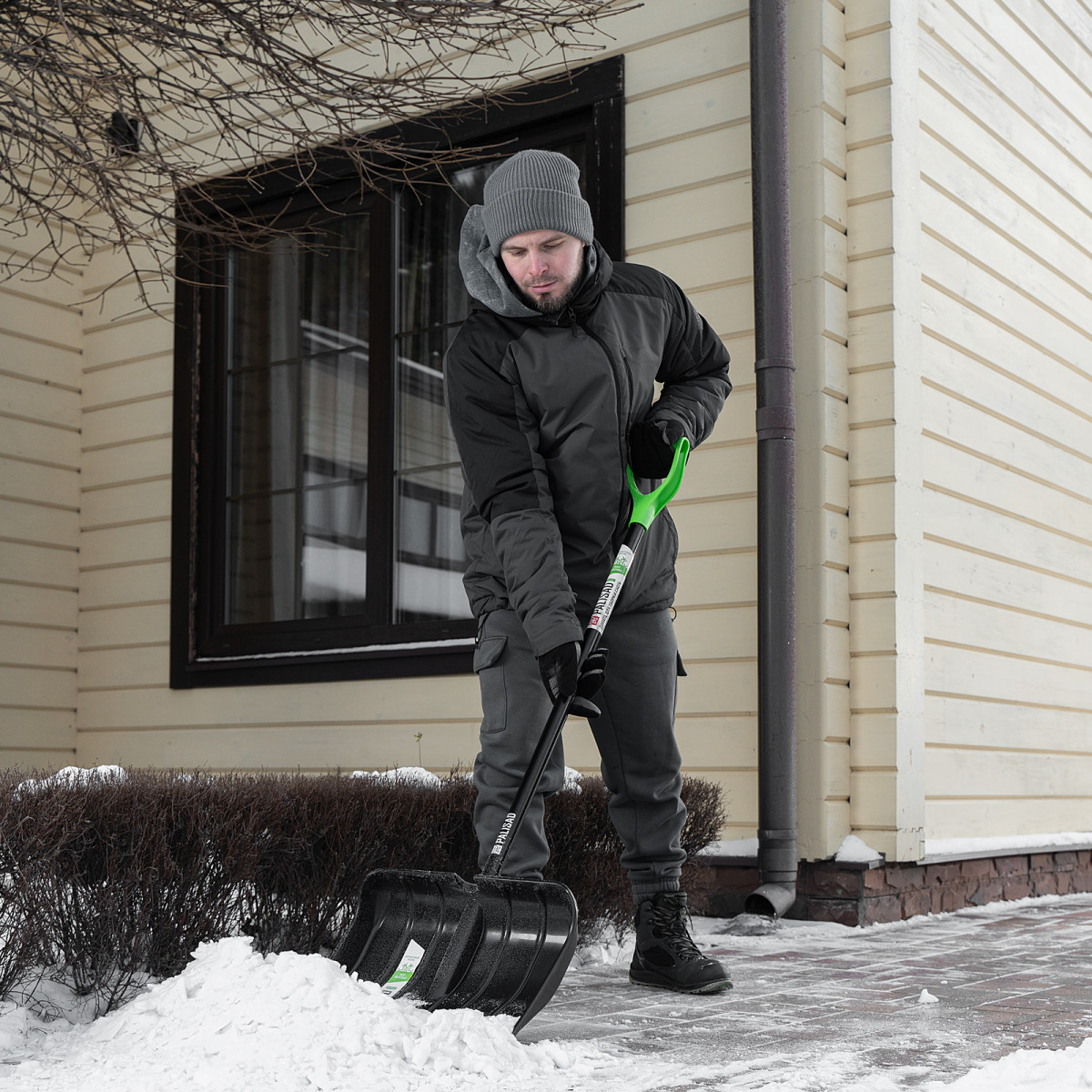 Лопата Palisad BASE 61798 размером 455 x 345 x 1330 мм, с ковшом из полипропилена и алюминиевым черенком, предназначена для уборки снега. Широкий ковш с бортиками вмещает большое количество снега. Лопата позволяет расчистить садовую дорожку, тротуар, площадку перед гаражом и т.д.
