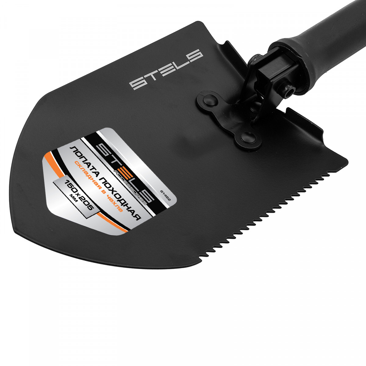 Складная походная лопата Stels 61462 с пластиковой рукояткой, 150 х 205 х 253-590 мм, в чехле, находит широкое применение: она пригодится садоводам, автомобилистам и туристам при необходимости проведения земляных работ. А благодаря складной конструкции возможно использование в качестве мотыги. Лопата легко проникает в землю благодаря закругленному краю верхней кромки рабочего полотна.