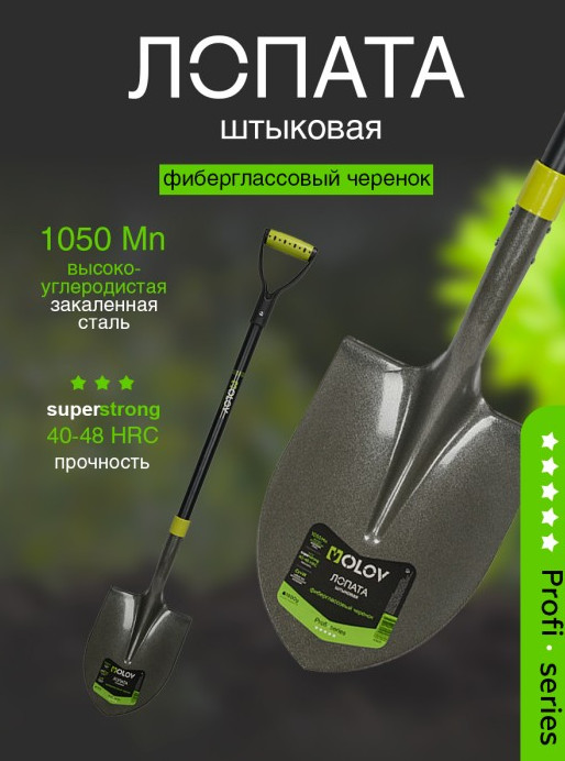 Лопата штыковая рельсовая сталь OLOV Профи фиберглассовый черенок V ручкой 115 см