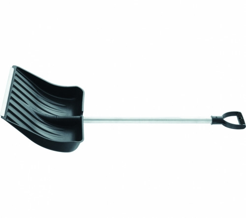 Снеговая лопата, имеющая широкий ковш из морозостойкого пластика. На рабочем ребре ковша имеется заостренная алюминиевая пластина, которая позволяет в процессе уборки срезать пласты смерзшегося снега, оставляя очищенную поверхность ровной. Тулейка усилена, что позволяет прикладывать повышенные нагрузки на лопату при работе, а также убирать тяжелый мокрый снег. Снабжена легким, прочным алюминиевым черенком. На конце черенка имеется удобная V-образная рукоятка, позволяющая при отбрасывании снега разместить руку максимально комфортно.