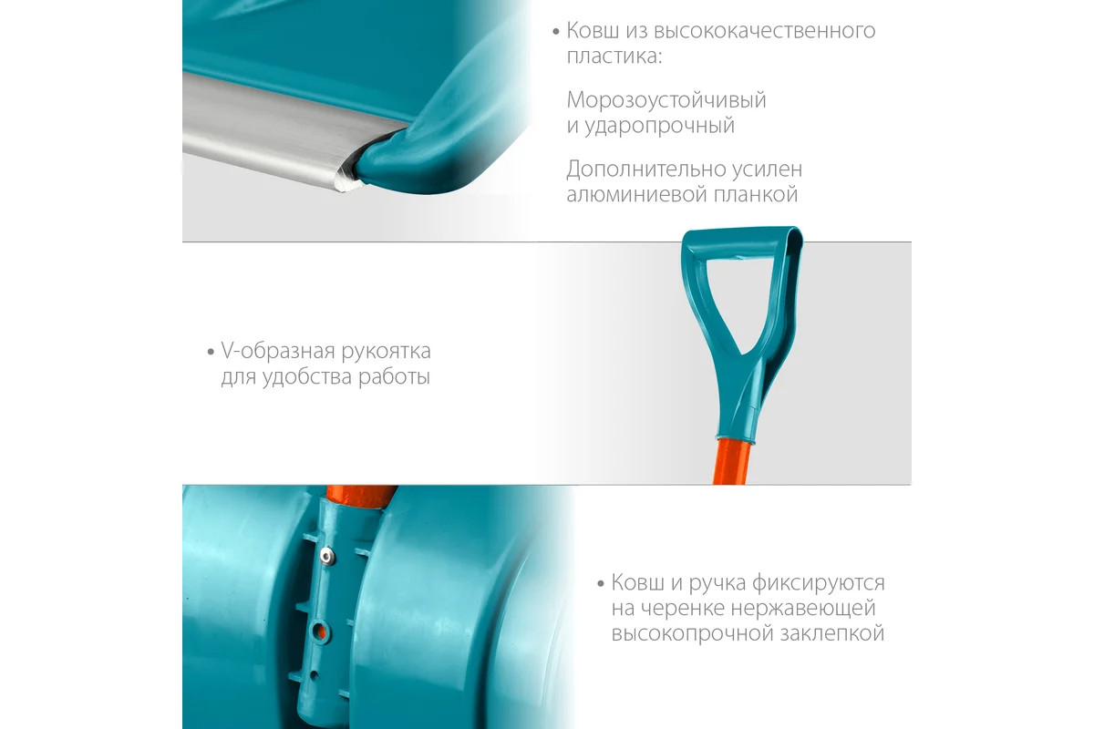 Алюминиевая планка защищает кромку лопаты от повреждений.