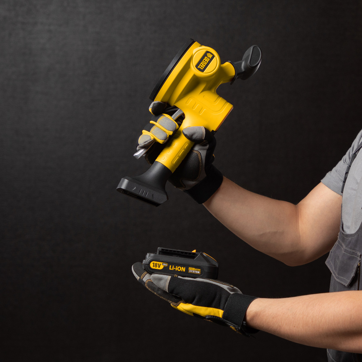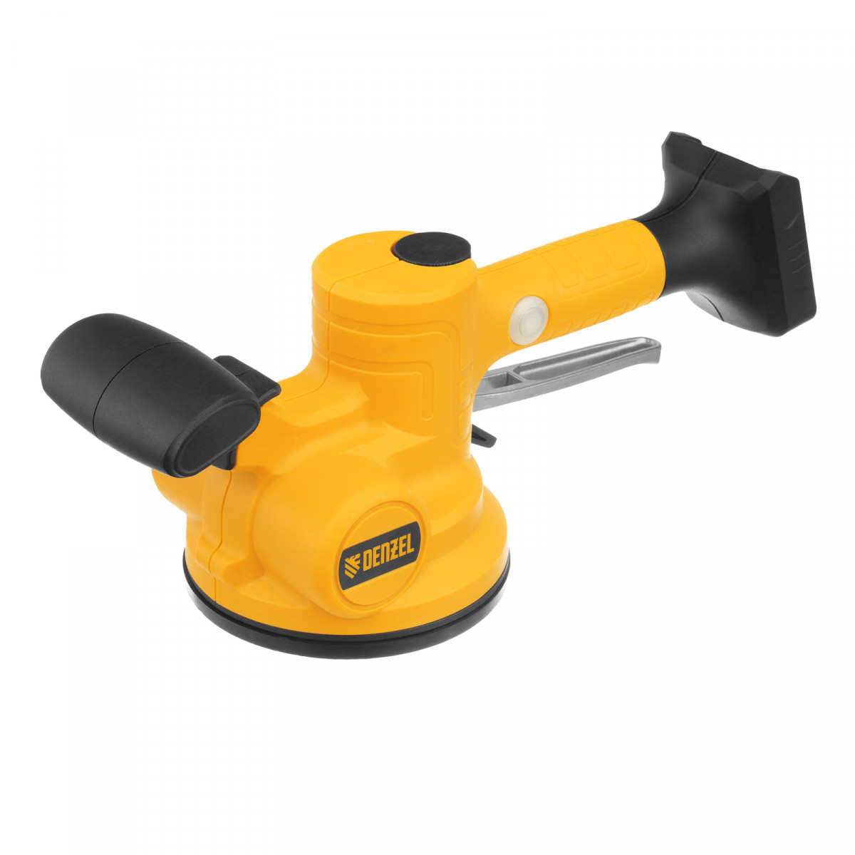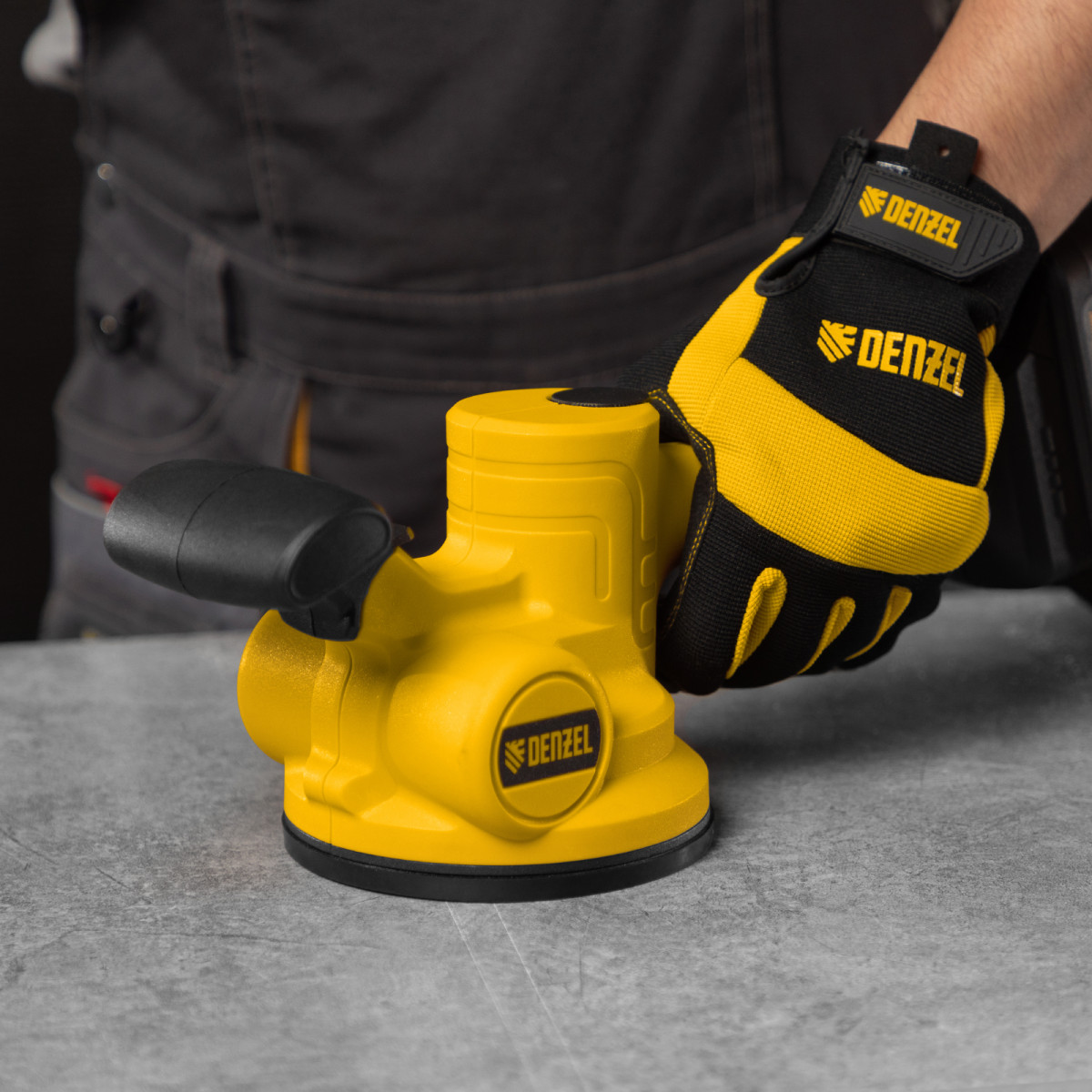 Машина для укладки плитки Denzel TTM-130-0 28481 работает от аккумуляторной батареи Li-Ion емкостью 2 А/ч, с рабочим напряжением 18 В, и используется для проведения облицовочных работ. При помощи присоски диаметром 130 мм оказывает вибрационное воздействие на поверхность плитки со скоростью 500-12000 об/мин, что способствует равномерному распределению клея, а также препятствует образованию воздушных пузырьков и полостей под плиткой, позволяя избежать ее перекоса и повреждения.,Машина поставляется без АКБ и зарядного устройства, на нее можно установить универсальный аккумулятор, совместимый с любым инструментом единой платформы Denzel battery system 18V серии IB.