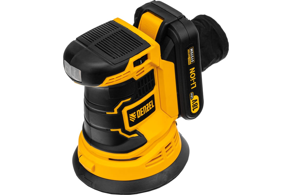 Аккумуляторная эксцентриковая шлифовальная машина работает от источника питания Li-Ion емкостью 2 А/ч, с рабочим напряжением 18 В.