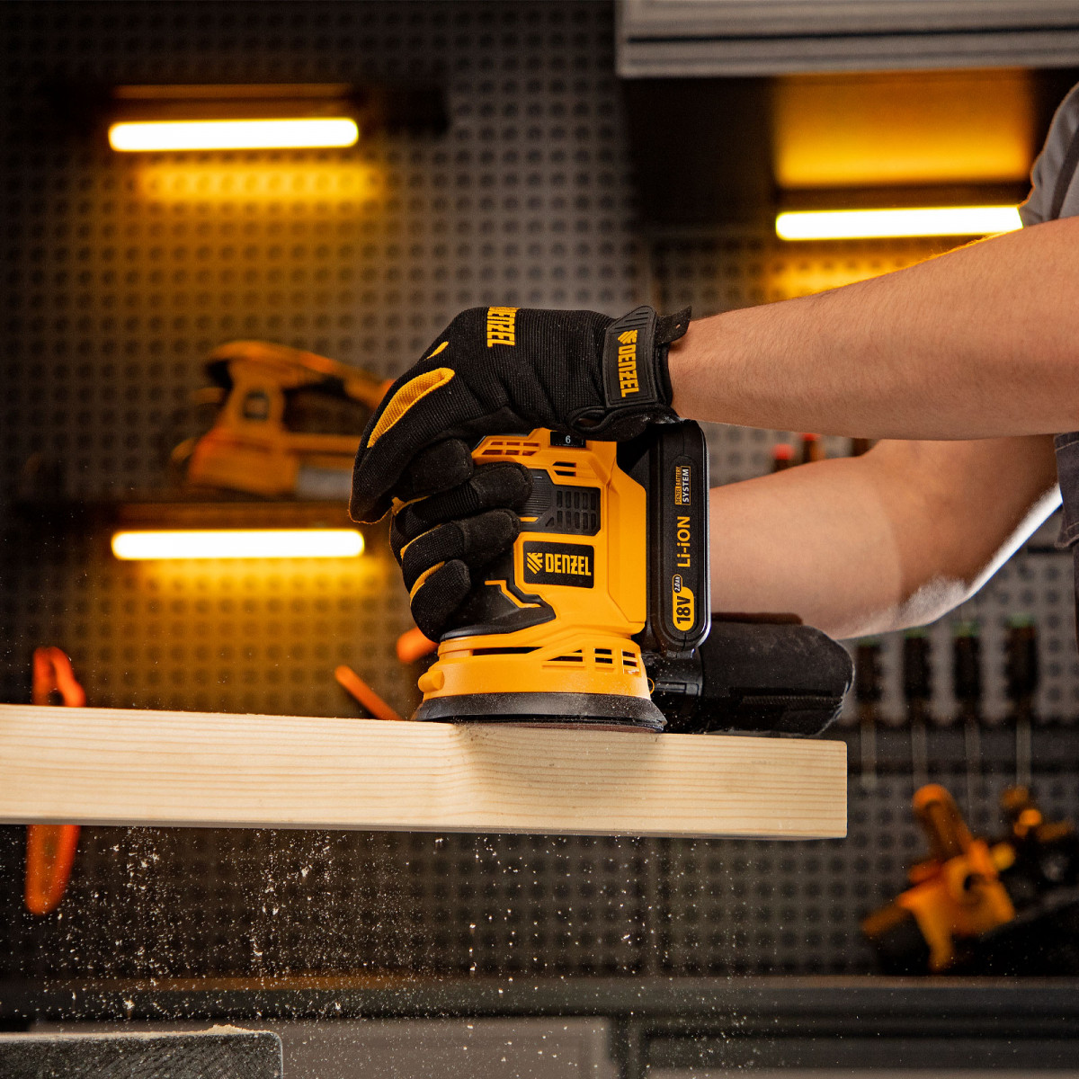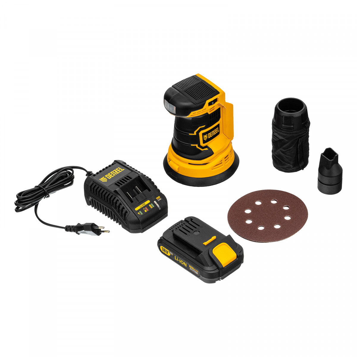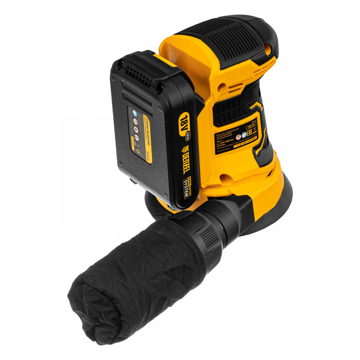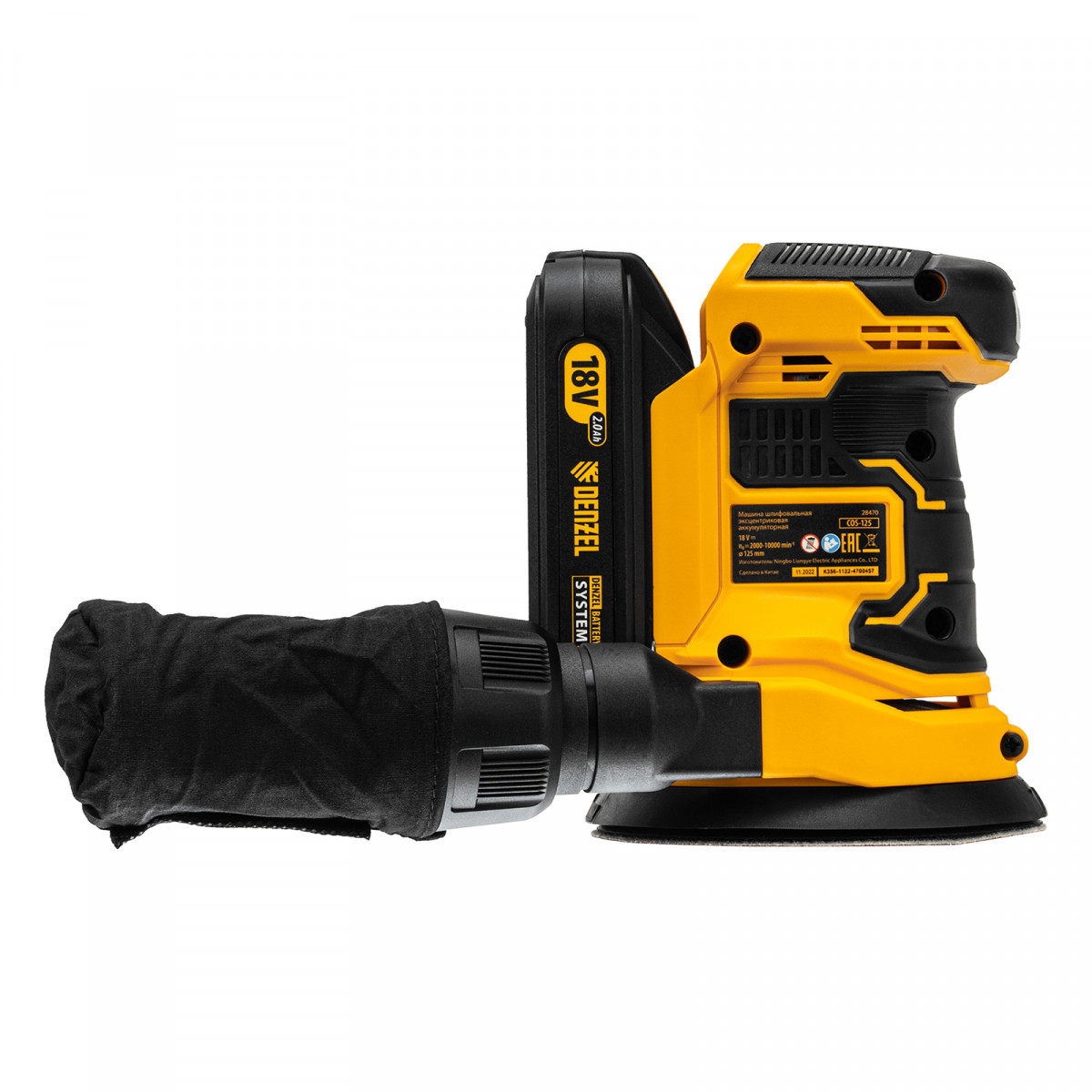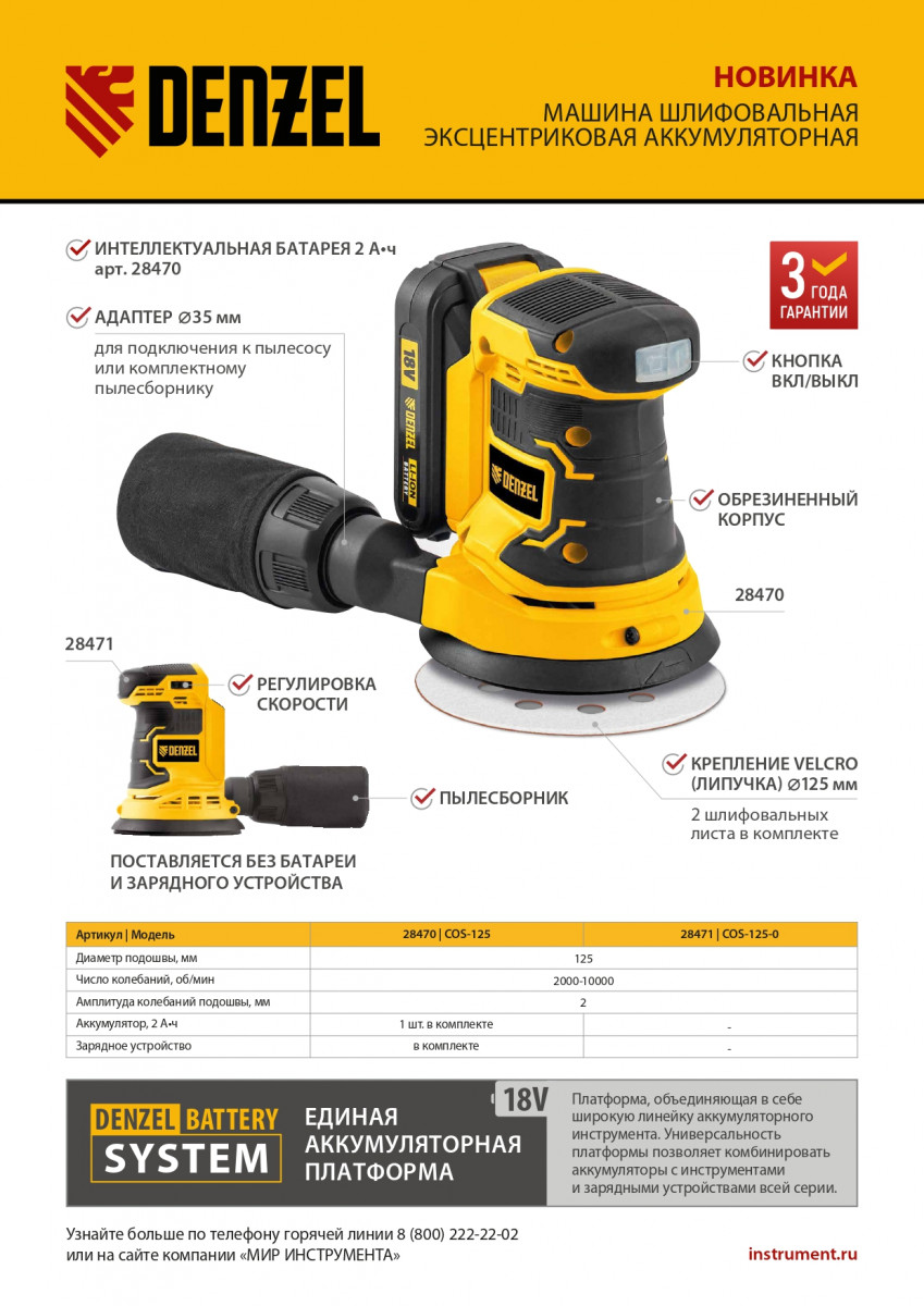 Машина шлифовальная эксцентриковая аккумуляторная COS-125, 18В Li-Ion Denzel