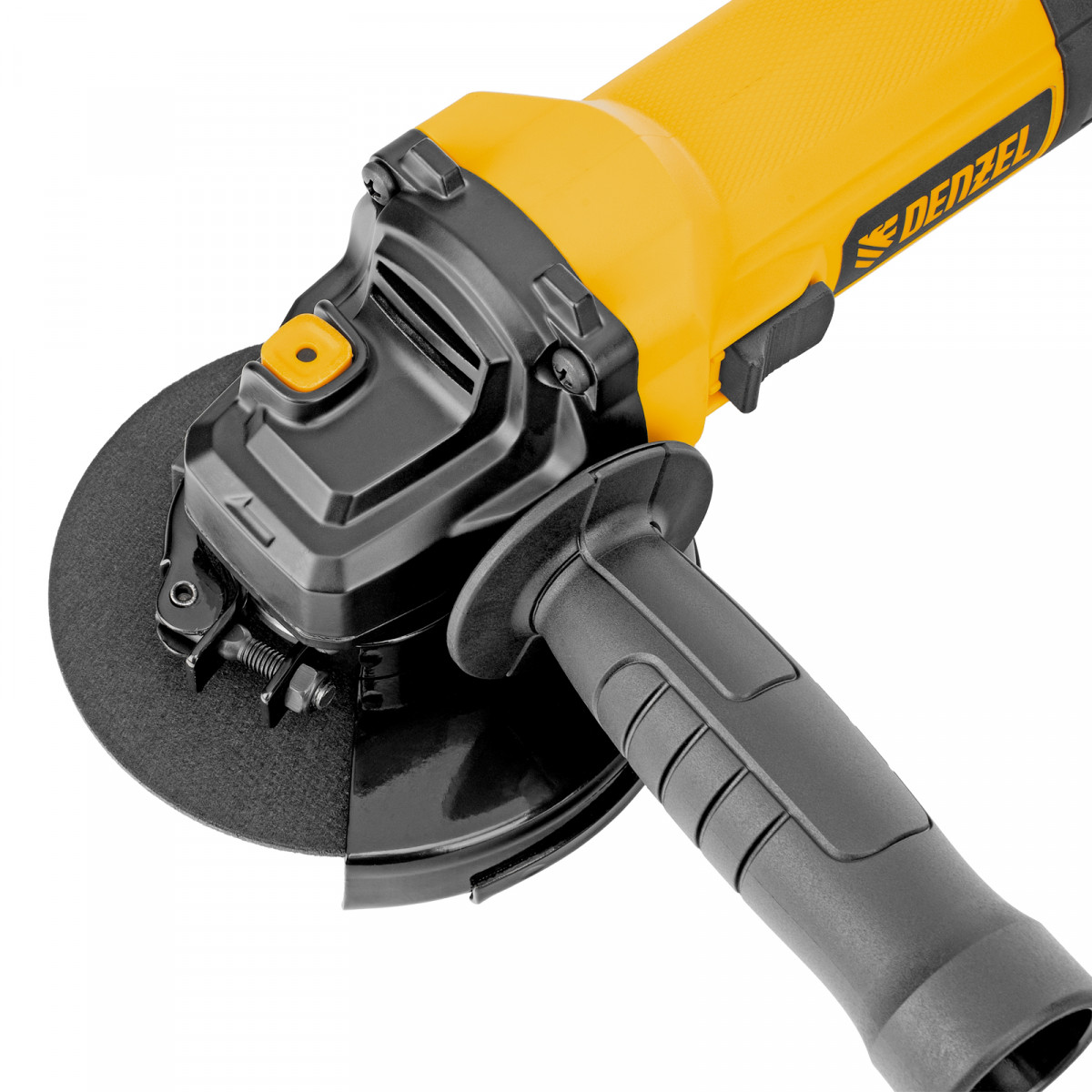 • Все необходимое в комплекте — УШМ поставляется с боковой рукояткой, защитным кожухом, ключом для фиксации оснастки и запасными угольными щетками.
