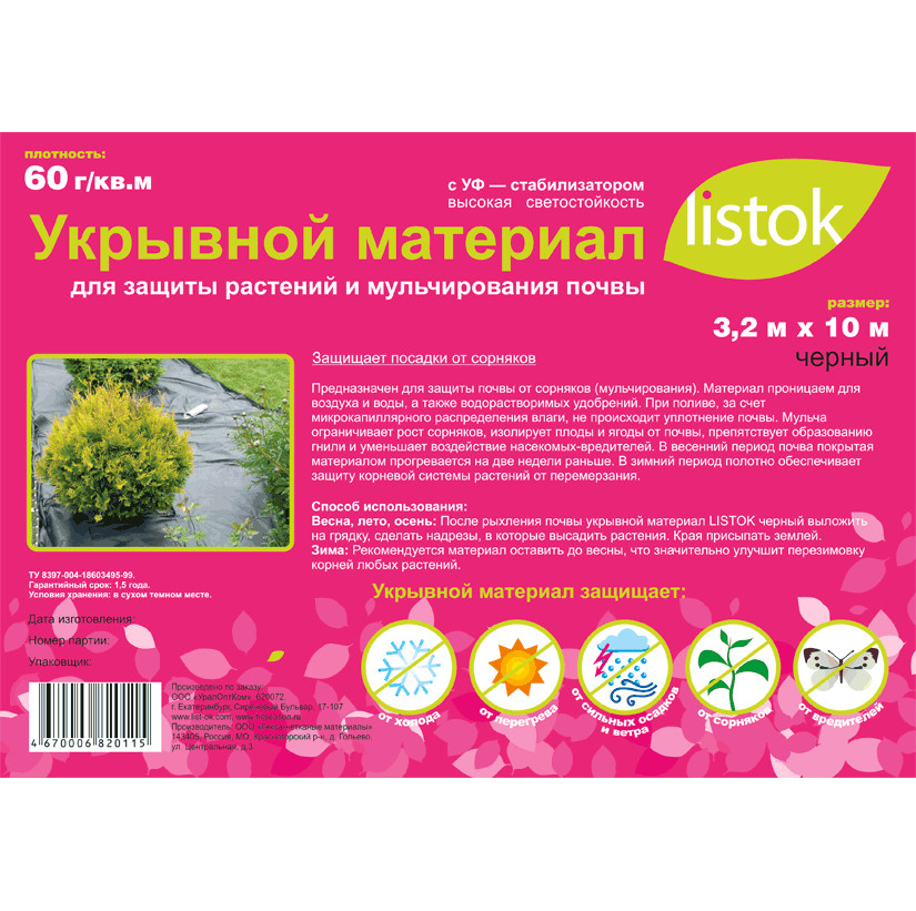 Материал укрывной LISTOK суф-60 3,2*10м/8 черный