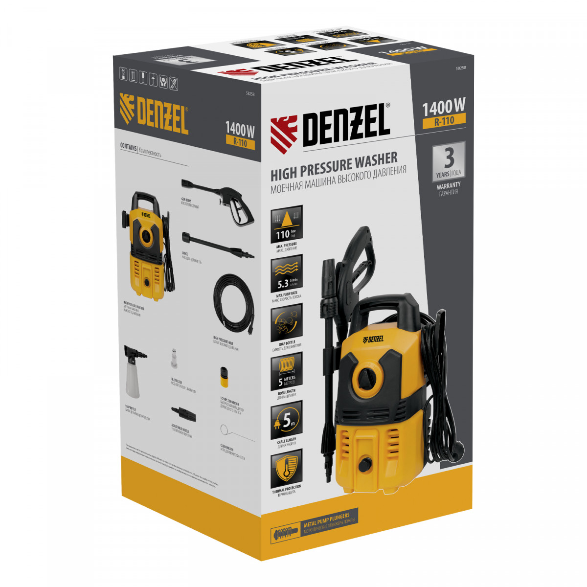Моечная машина высокого давления R-110, 1400 Вт, 110 бар, 320 л/ч// Denzel