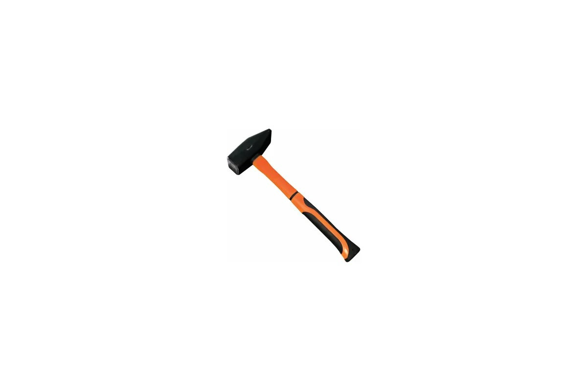 Молоток , с фибергласовой рукояткой - Боек покрыт черным лаком и надежно зафиксирован на рукоятке при помощи эпоксидного клея. Боёк кованый и отфрезерованный, изготовлен из стали марки 50. Рабочие части бойка закалены, соответствуют требованиям ГОСТ 2310-77. Рукоятка изготовлена из фибергласса (стеклопластика), обладающего высокой механической прочностью, и устойчива к воздействию масел, бензина и растворителей. Стальной боёк квадратной формы, весит 0,4 кг.
