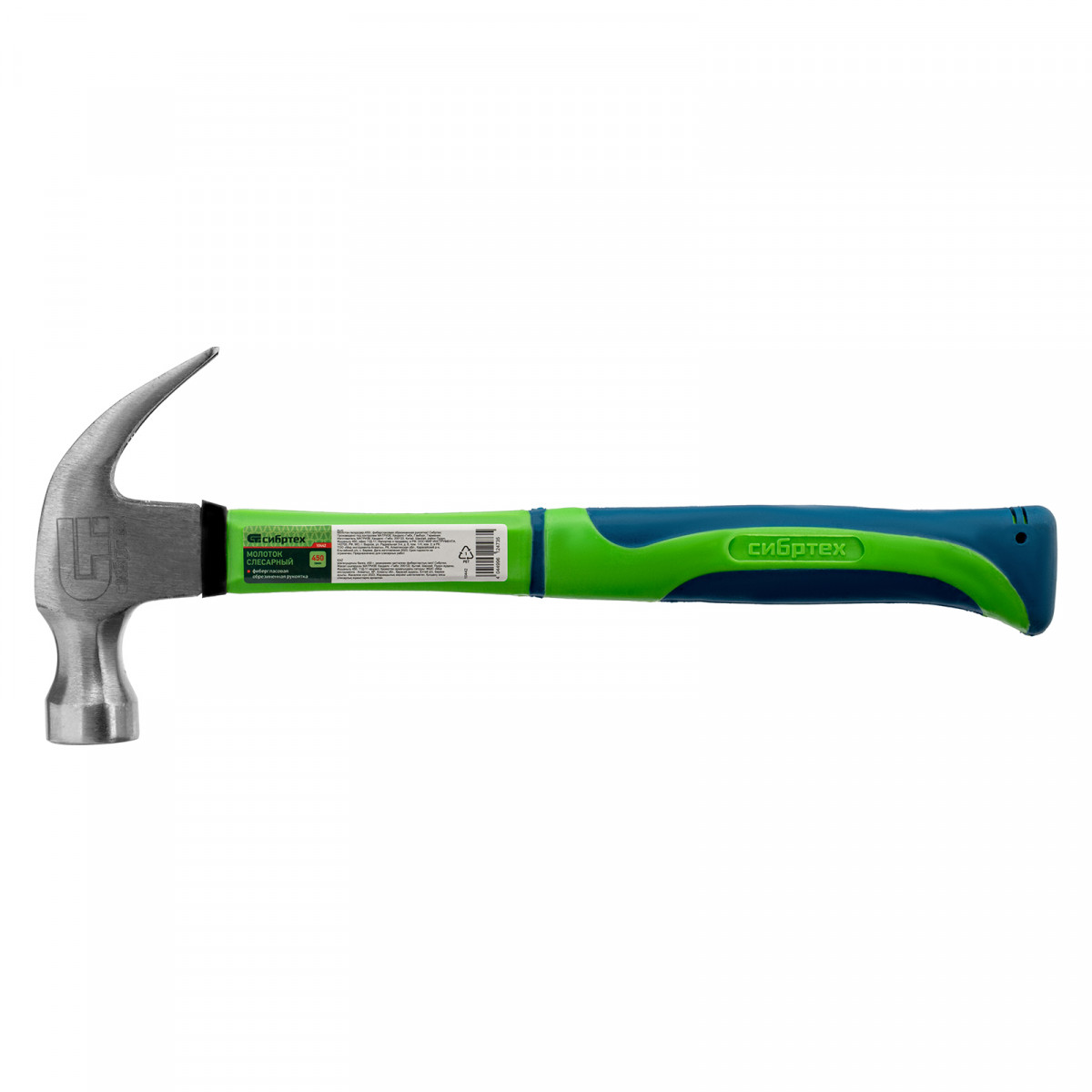 Молоток-гвоздодер, 450 г, фибергласовая обрезиненная рукоятка Сибртех