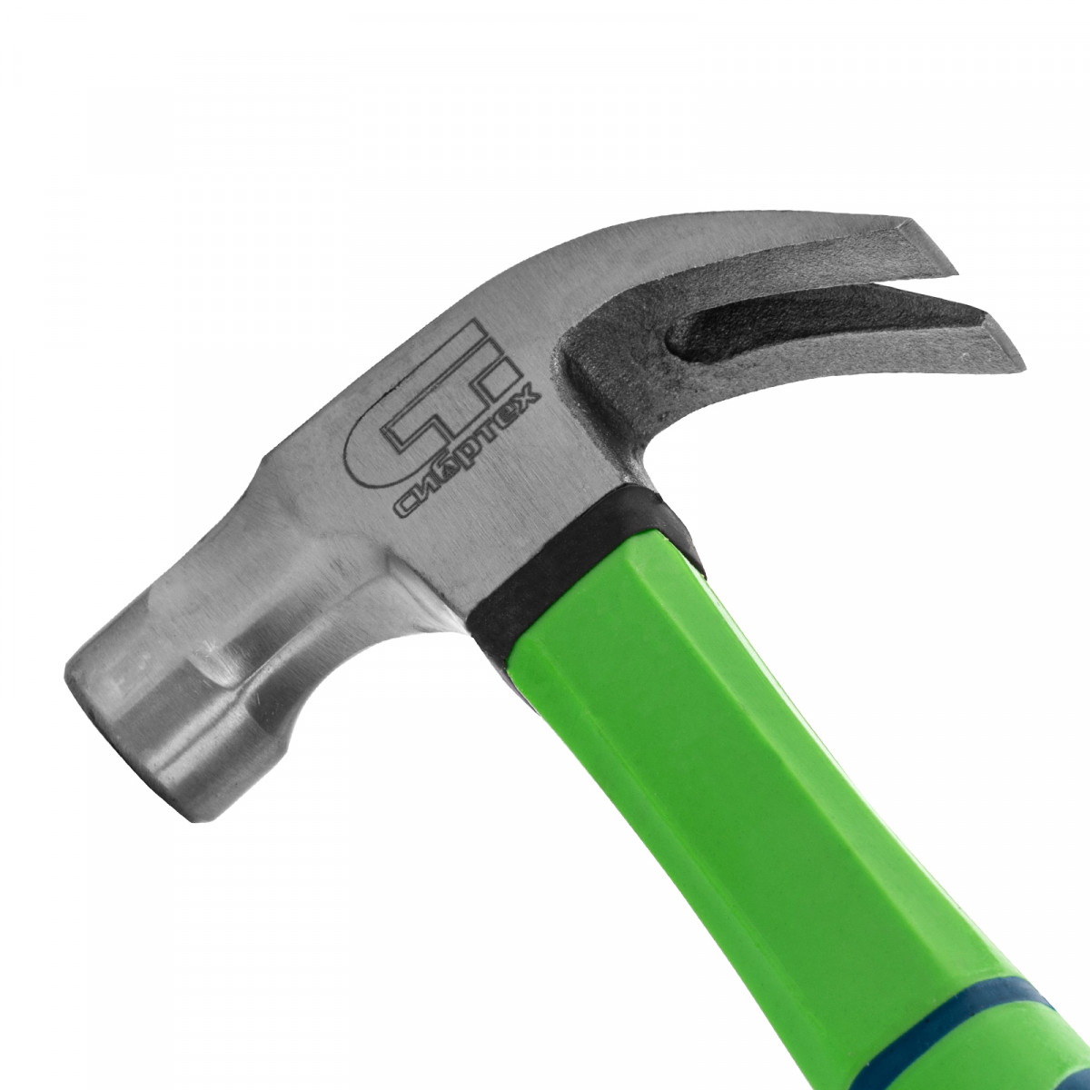 Молоток-гвоздодер, 450 г, с магнитом, фибергласовая обрезиненная рукоятка Сибртех