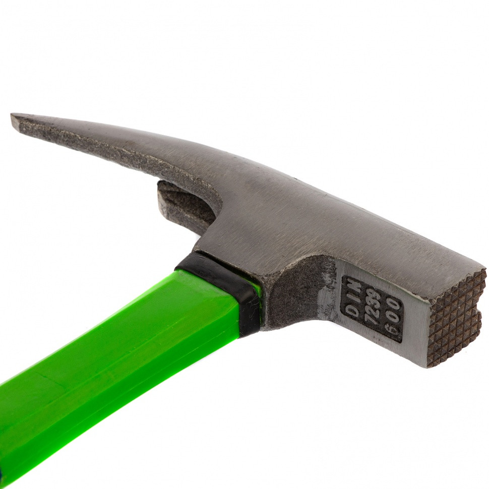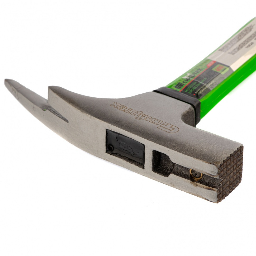 Молоток кровельщика Сибртех 10628 с головкой весом 600 г и фибергласовой обрезиненной рукояткой используется при монтаже и демонтаже кровли. Удлиненный клин предназначен для пробивания отверстий и отгибания кромок, а гвоздодер — для выпрямления неудачно забитых гвоздей. На ударной поверхности имеются насечки, благодаря которым боек не соскальзывает с гвоздя при ударе. Молотком удобно работать в труднодоступных местах — магнитный фиксатор избавляет от необходимости придерживать гвоздь рукой.
