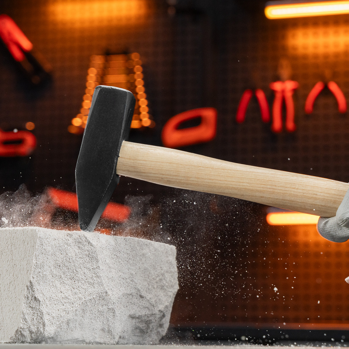 • Прочность — головка изготовлена из среднеуглеродистой стали 45 методом ковки и отфрезерована, рабочие части бойка закалены до твердости 40-45 HRC.