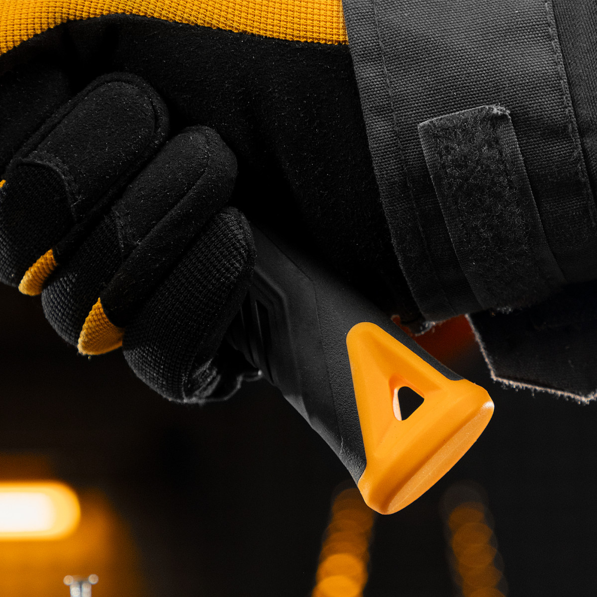 Фибергласовая рукоятка с TPR покрытием поглощает вибрации от отдачи, обеспечивая комфорт при работе.