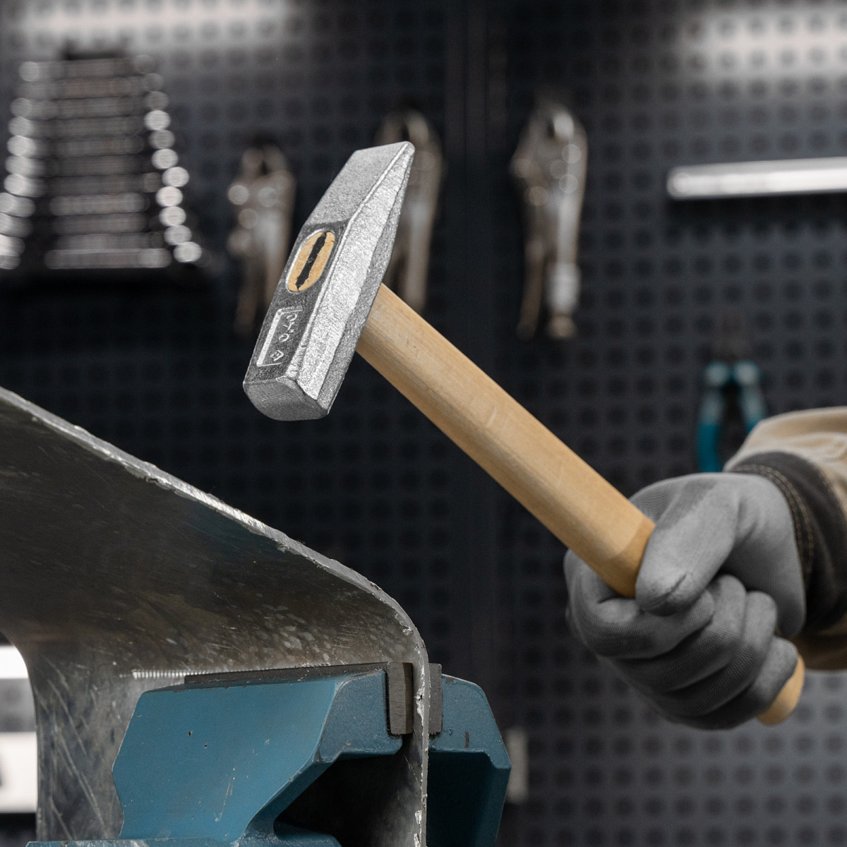 Молоток слесарный, 400 г, квадратный боек, деревянная рукоятка