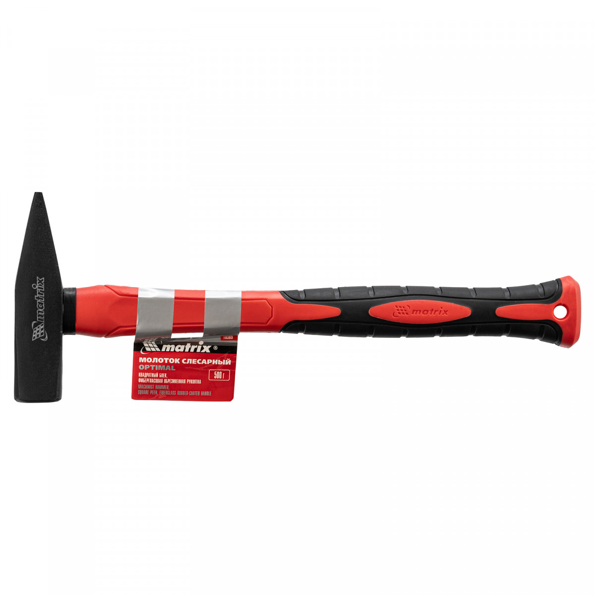 Молоток слесарный optimal, 500 г, фибергласовая обрезиненная рукоятка, квадратный боек Matrix
