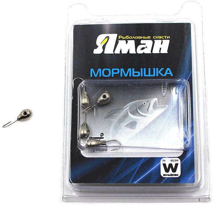 Мормышка вольф ЯМАН Капля с ушк. + кр. камень, р.4, вес 1 г, цв.никель(уп.5 шт.)