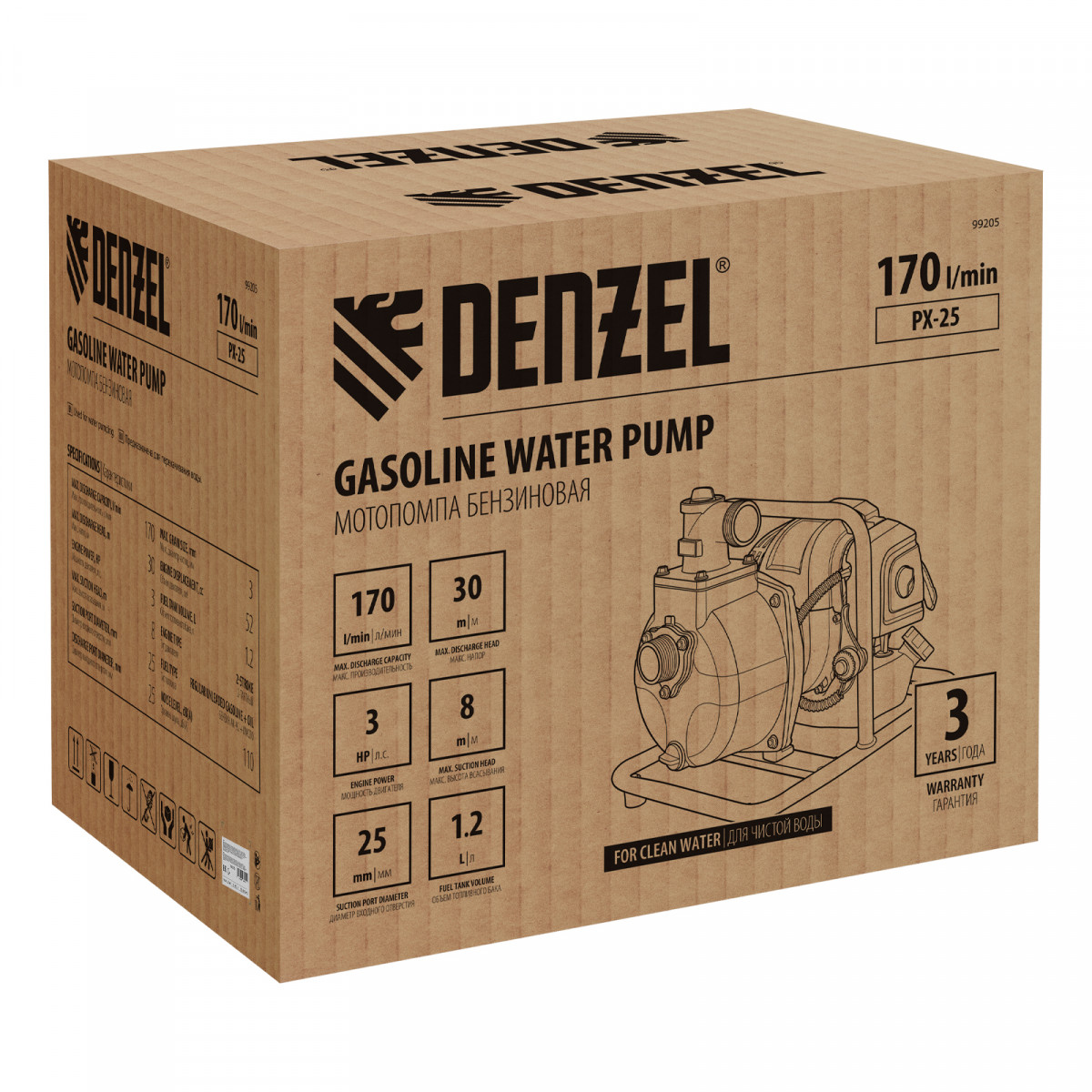 Мотопомпа бензиновая для чистой воды PX-25, 52 см3, 1", 170 л/мин, глуб 8 м, напор 30 м Denzel