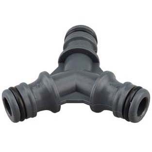 Муфта тройник-коннектор из ударопрочного пластика для соединения с различными типами шлангов диаметром 1/2 (12 мм) и 5/8 (16 мм).