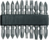 В наборе: 10 бит из хром-ванадиевой стали длиной 65 мм: SL4; SL5; SL6; РН0; РН1; РН2; РН3; PZ0; PZ1; PZ2.