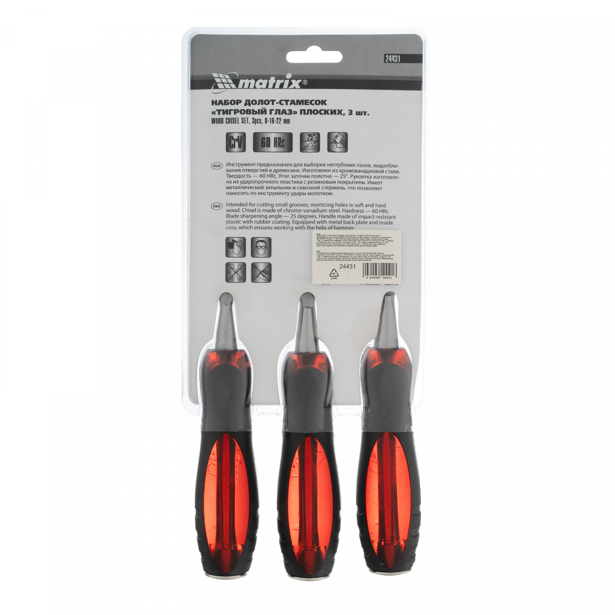 Набор долот-стамесок плоских "Тигровый глаз", 3 шт, 8-16-22 мм Matrix
