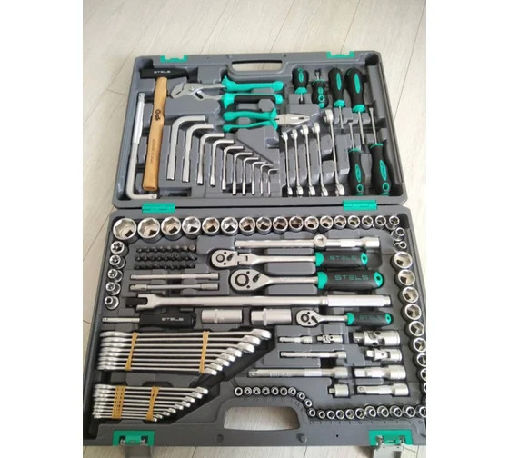 Наборы инструмента торговой марки STELS разработаны специально для автолюбителей и центров технического обслуживания. Каждый этап производства контролируется в соответствии с международными стандартами. Головки и комбинированные ключи изготовлены из хромованадиевой стали, придающей инструменту исключительную твердость в сочетании с легкостью. Биты, биты-вставки и отвертки производятся из стали S2, улучшающей свойства инструмента. Набор комплектуется трещотками с реверсом и быстрым сбросом, трещоточный механизм имеет 72 зуба и обеспечивает исключительную мягкость и плавность в работе. Шаг зуба 5 град. Все наборы упакованы в кейс, изготовленный из жесткого противоударного пластика, с металлическими застежками. Наборы инструмента STELS пригодятся вам не только в автомобиле. С их помощью можно проводить бытовой ремонт дома и на даче, ремонт бытовых конструкций и садовой техники. На все наборы инструментов STELS предоставляется пожизненная гарантия (подробнее об условиях гарантии вы можете узнать из гарантийного т