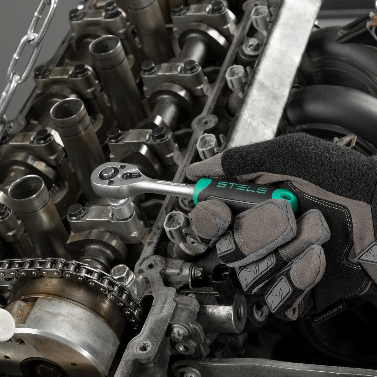 • Комфортная работа в труднодоступных местах — в набор входят ключи-трещотки с 72 зубьями, рабочий шаг составляет всего 5°.