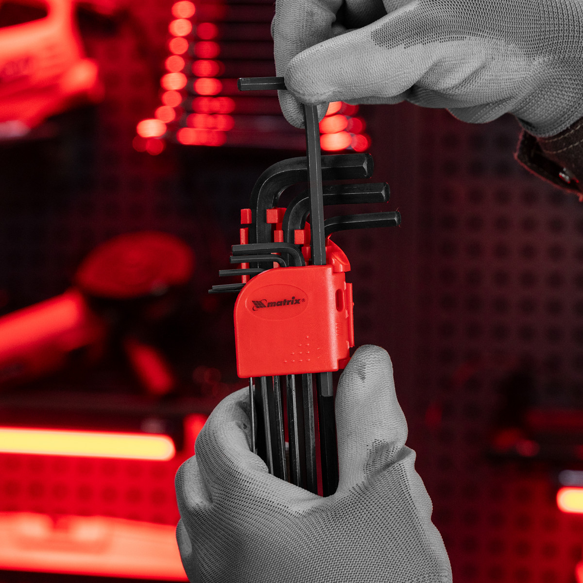 Набор ключей имбусовых HEX, 1.5-10 мм, CrV, 9 шт, удлиненные Matrix
