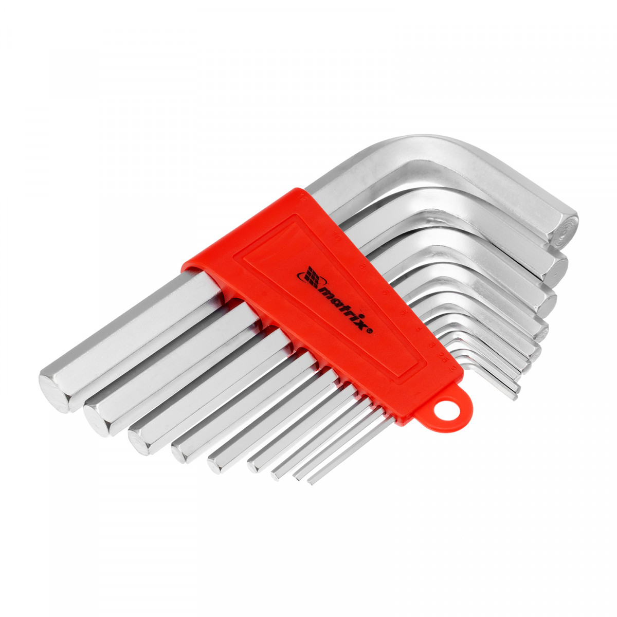 Набор ключей имбусовых HEX, 2-12 мм, CrV, 9 шт, короткие с сатинированным покрытием Matrix