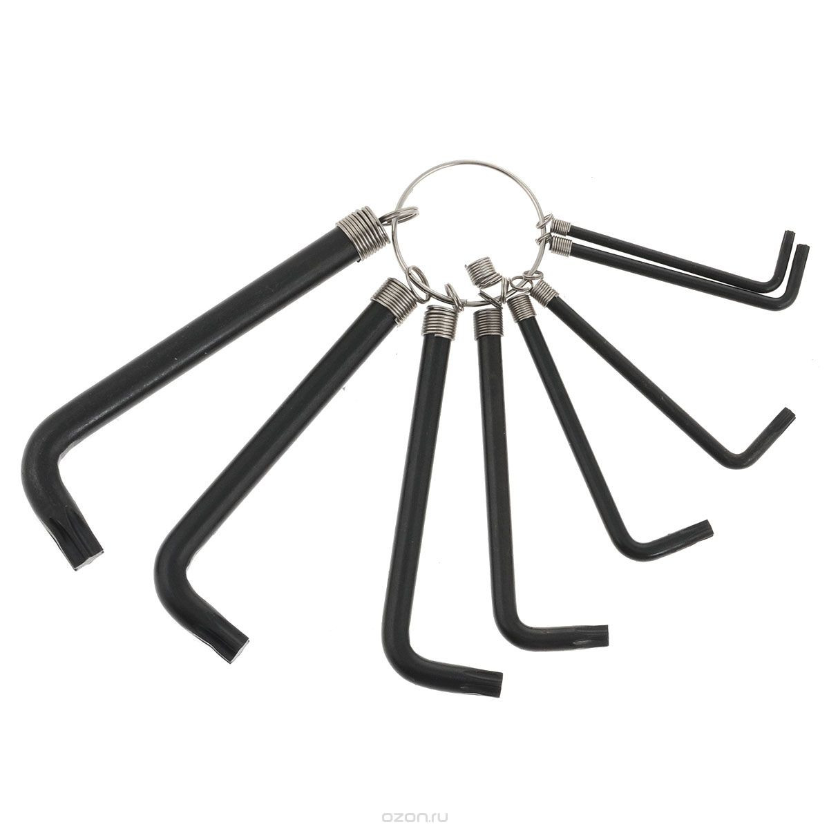 Набор имбусовых ключей Torx 9 шт., оксидированные на кольце SPARTA 112667. Набор имбусовых ключей c профилем Torx предназначен для работы с крепежом, оснащенным внутренним гнездом Torx. Ключи изготовлены из хромованадиевой стали, оксидированы. Твердость рабочей части — 45 HRС. Для удобства хранения ключи закреплены на кольце.