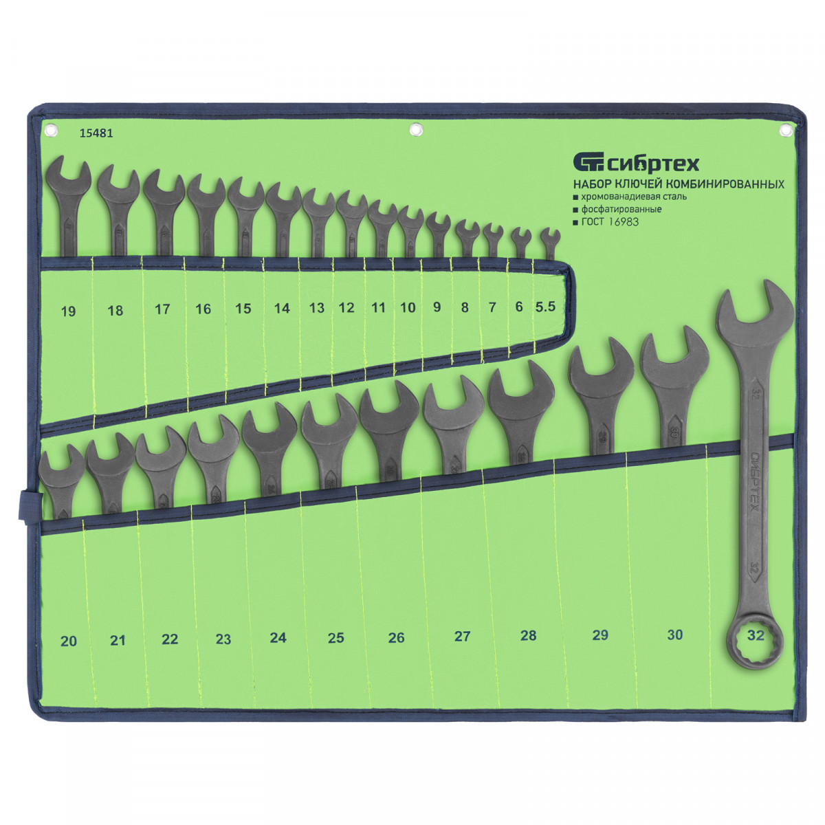 Набор ключей комбинированных, 5,5 - 32 мм, 27 шт., CrV, фосфатированные Сибртех