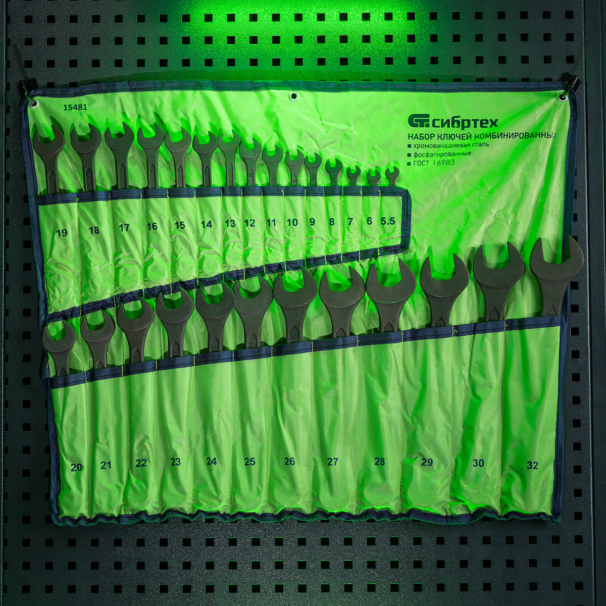 Набор комбинированных ключей Сибртех 15481 включает 27 инструментов из стали CrV, с фосфатированной поверхностью, соответствующих ГОСТ 16983, и предназначен для откручивания и закручивания крепежа размером 5,5-32 мм с 6-гранным или 12-гранным профилем головки. Внутренняя поверхность кольцевого зева с 12 гранями обеспечивает плотный контакт с головкой крепежа, что предотвращает деформацию ее граней. Ключи используются для слесарно-монтажных работ, будут полезны в строительстве, во время ремонта, а также пригодятся дома или в гараже.