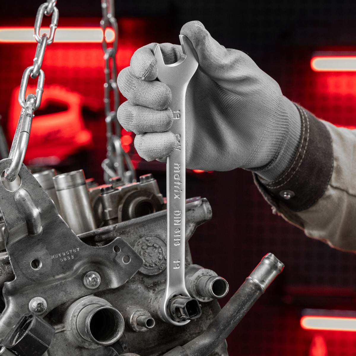 • Аккуратная работа — накидные части с 12-гранным профилем охватывают всю поверхность крепежа, уменьшая риск деформации его граней.