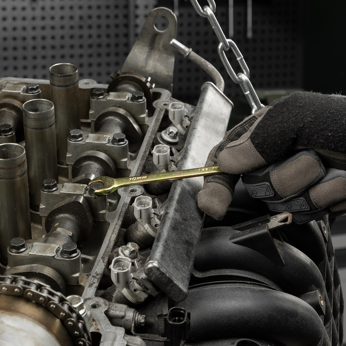 • Комфортная работа в труднодоступных местах — накидные головки расположены под углом 15° к плоскости ключей.