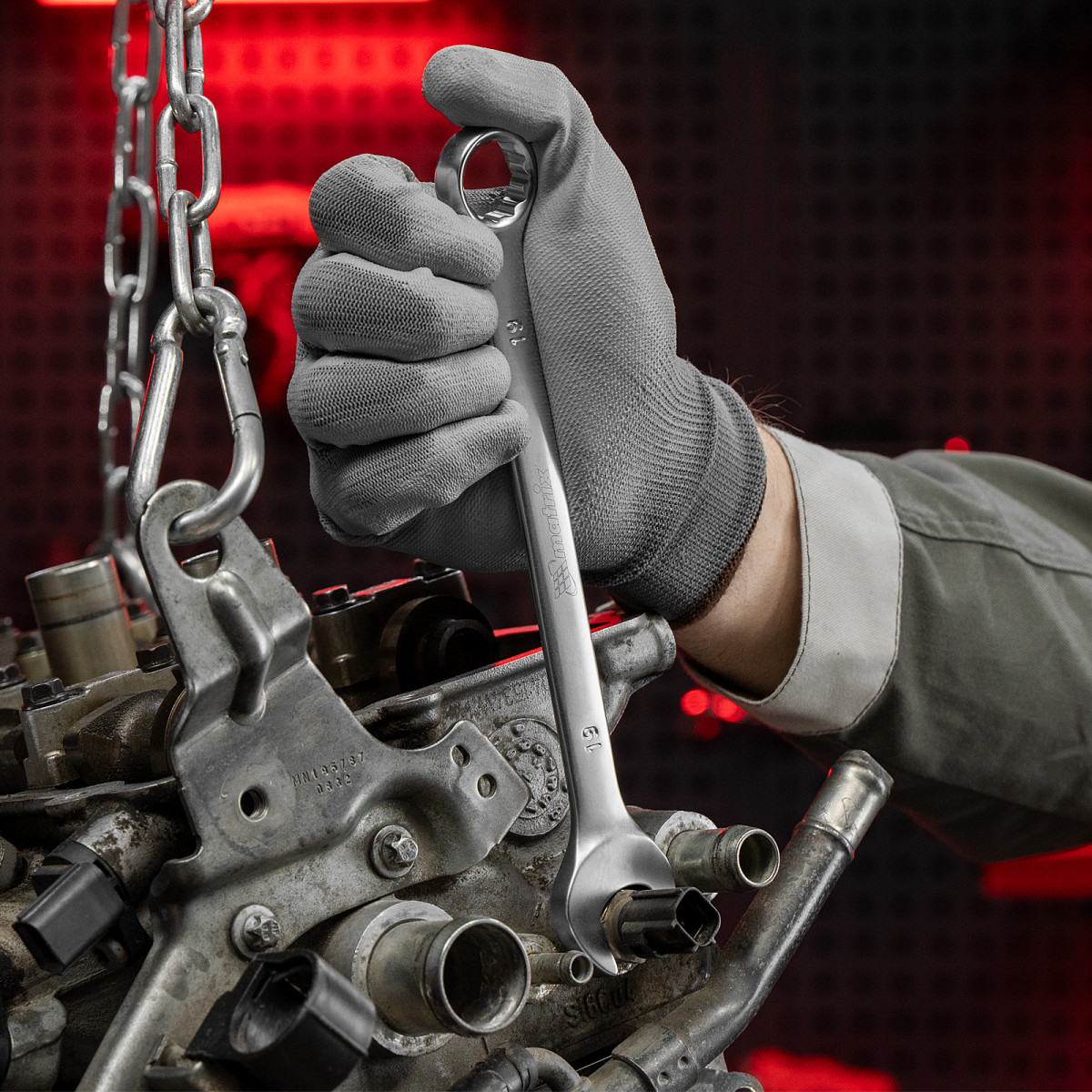 - Аккуратная работа — накидные части с 12-гранным профилем охватывают всю поверхность крепежа, уменьшая риск деформации его граней.
