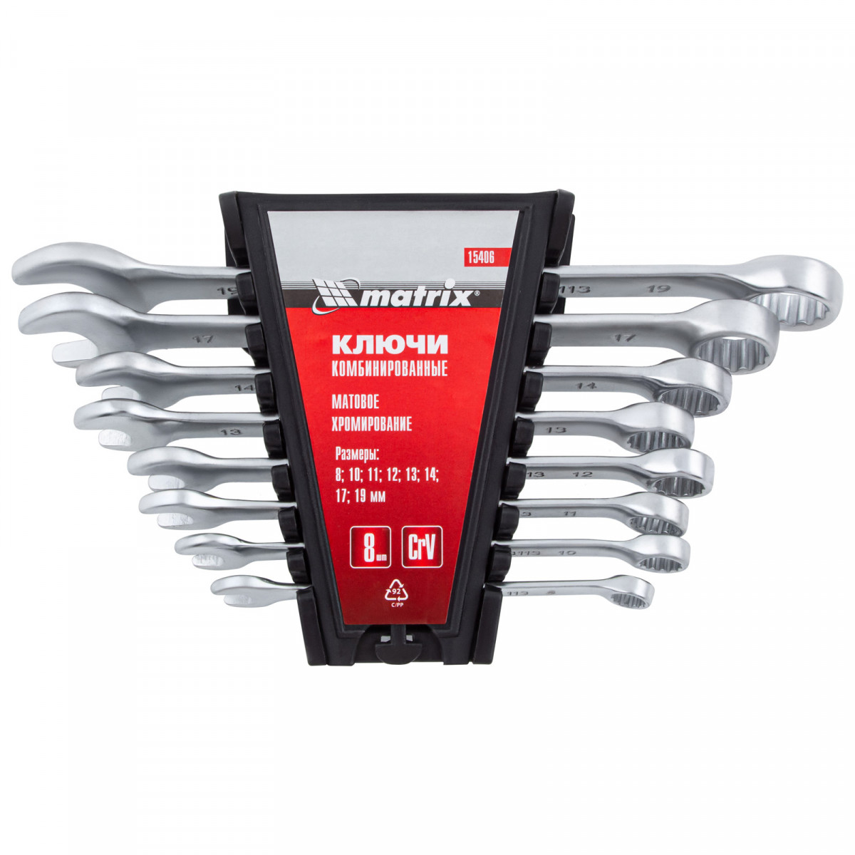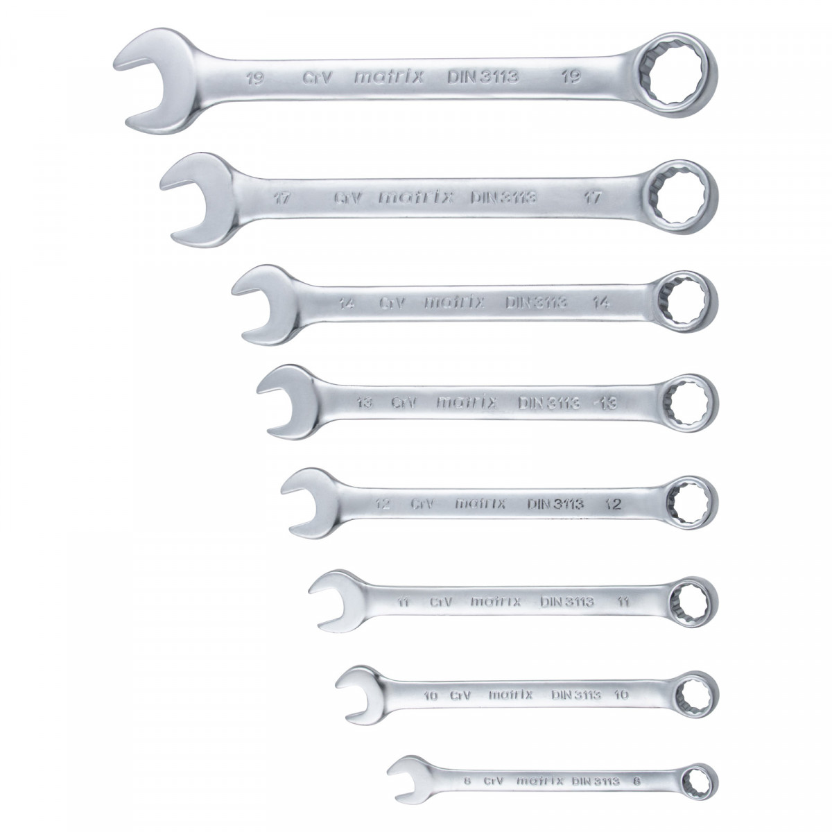 Набор ключей комбинированных, 8-19 мм, 8 шт, CrV, матовый хром Matrix