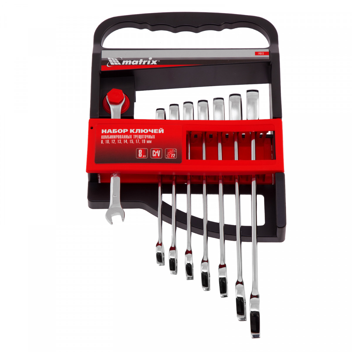 Набор из 8 комбинированных трещоточных ключей Matrix 14513 пригодится мастерам и автолюбителям для монтажа/демонтажа болтов и гаек наиболее популярных типоразмеров. Храповой механизм с 72 зубьями облегчает закручивание или откручивание крепежей, в том числе в труднодоступных местах.