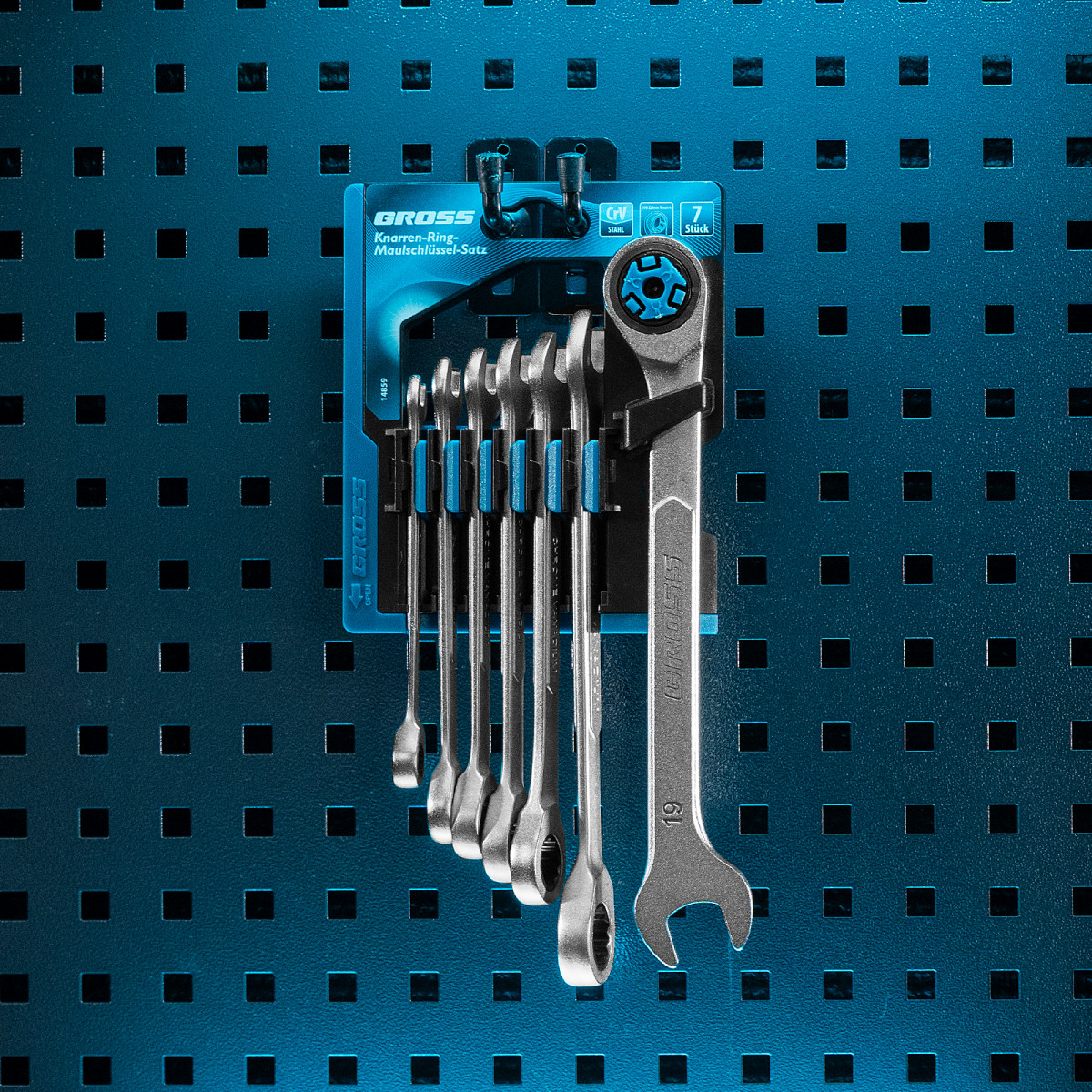 Набор ключей комбинированных трещоточных, количество зубьев 100, СRV, 7 шт, 8-19 мм Gross