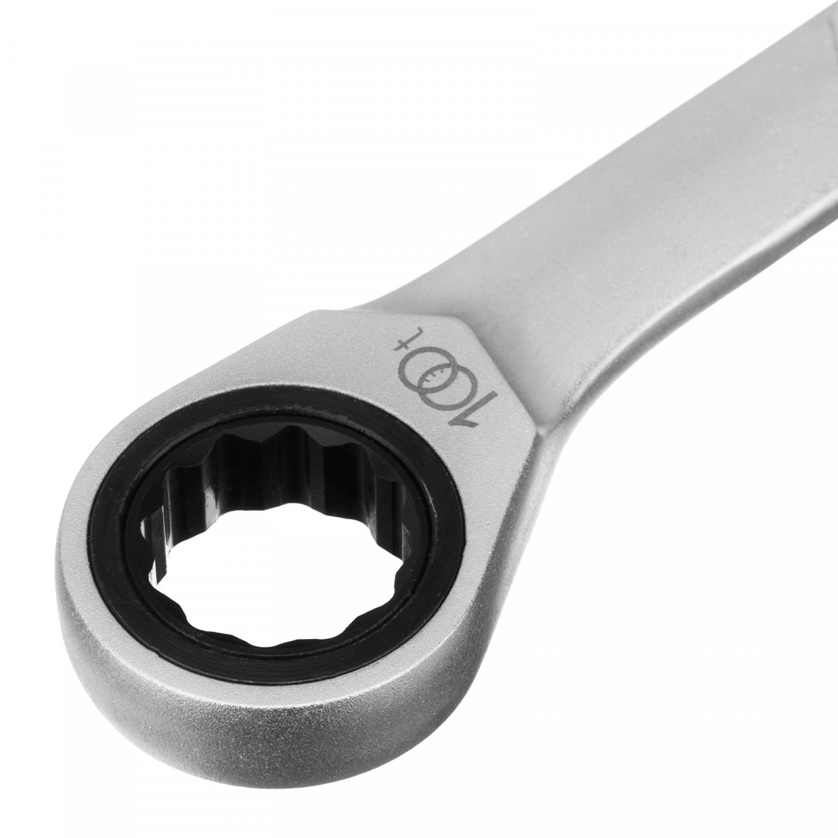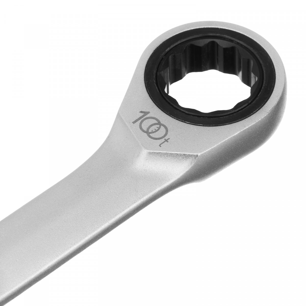 Храповой механизм с 100 зубцами обеспечивает плавный ход инструмента (шаг трещотки всего 3,6°).