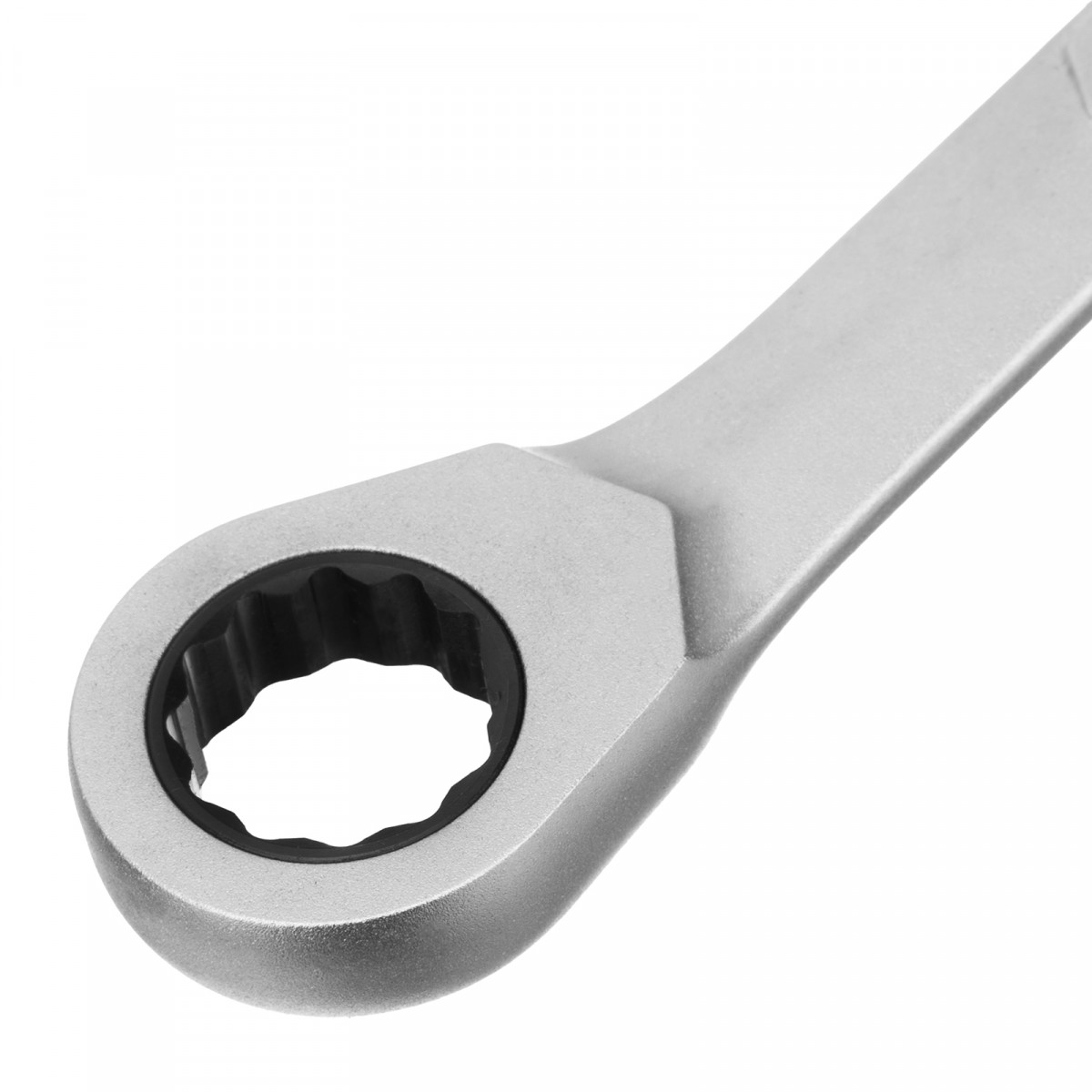 Набор комбинированных трещоточных ключей Gross 14859 включает в себя 7 инструментов из стали CrV и используется для монтажа и демонтажа резьбовых соединений диаметром от 8 до 19 мм. Ключи имеют как рожковую, так и накидную часть, что повышает их функциональность. У накидной части 12 внутренних граней, что увеличивает площадь соприкосновения с головкой крепежа и снижает риск ее деформации. Ключи применяются как в автосервисах, так и для самостоятельного ремонта автомобилей.