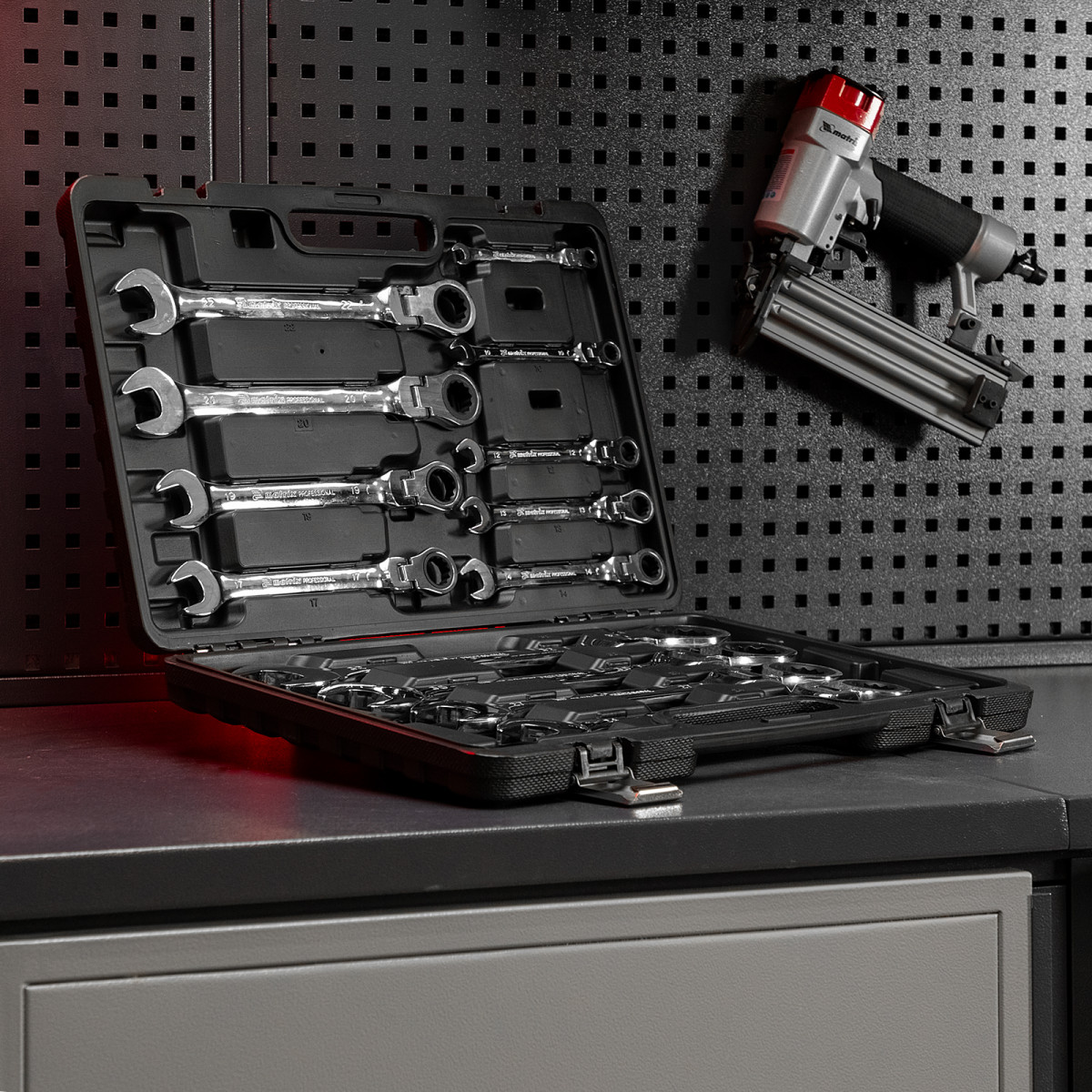 Набор ключей комбинированных, трещоточных шарнирных 13 шт. Matrix